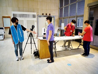 文化局強調,疫情雖然逐漸趨緩,防疫仍然要落實,各場館維持單一出入口並規劃參觀動線,入館民眾請配合量測體溫、雙手消毒及落實實聯制,並應全程佩戴口罩且禁止飲食,文化局也於各藝文場館設置「社交距離宣導員」,提醒民眾保持室內1.5公尺的安全社交距離,提供市民安心參與藝文活動的空間。(8/10*6)*文化局