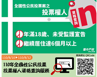 全國公投投票權人名冊 8/10-12開放民眾查詢