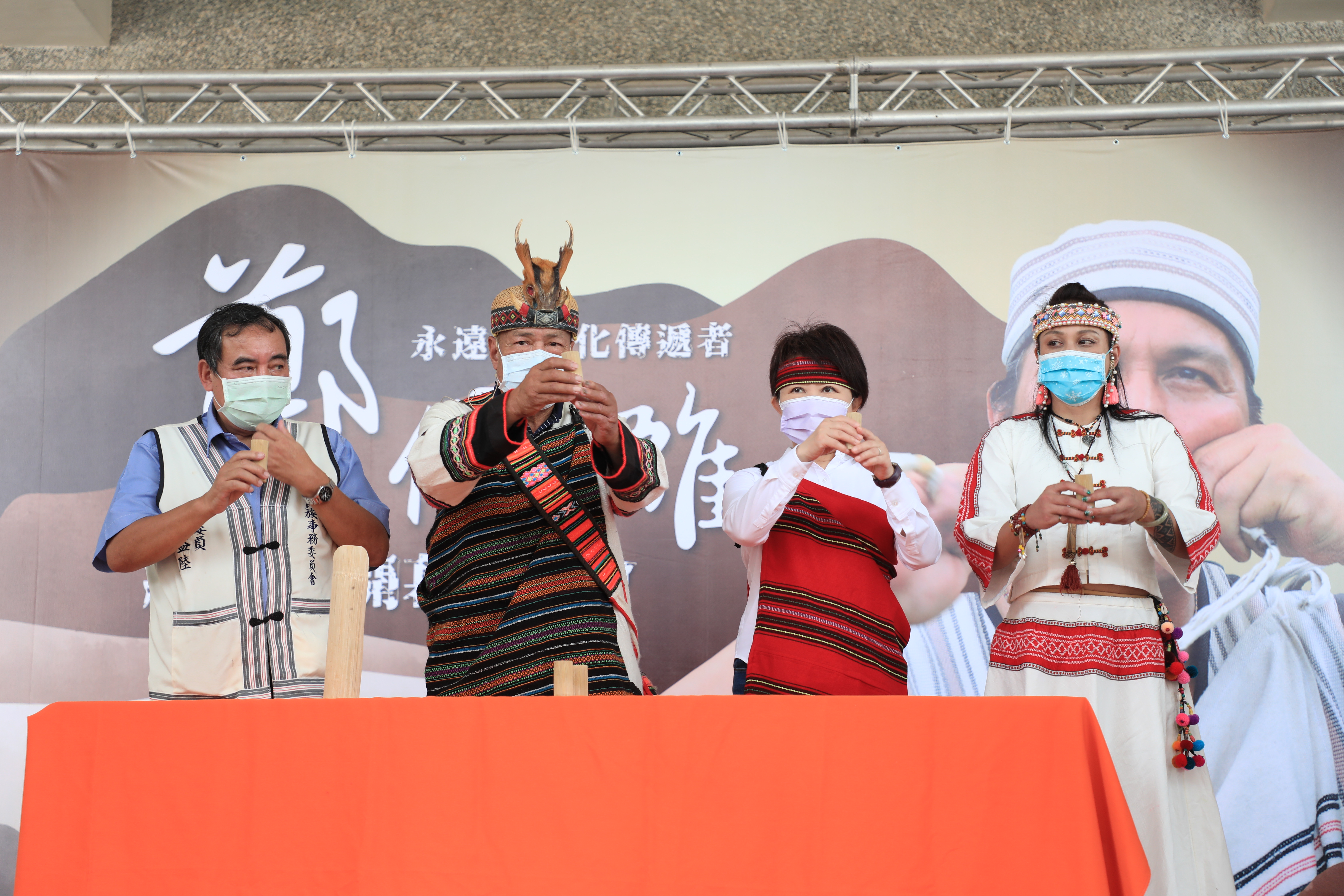 今日記者會採國語與原住民母語雙語主持,由二重唱團體「北原山貓」主唱吳廷宏(杜賴・瓦旦)擔綱國語主持,母語部分則由台中市原民會原住民族語推廣人員蔡瑞斯(Yabung Behuy)擔任;除了盧市長,中市原民會主任委員林益陸、交通局長葉昭甫、觀光旅遊局長韓育琪、市議員林榮進、黃仁、朱元宏、大雅區長李修齊、中央原住民族委員會魯凱族專任委員溫建華、泰雅族專任委員林國雄、鄭保雄大師的長女鄭汝芝皆出席與會,立法委員伍麗華、市議員吳顯森也派代表到場共襄盛舉。(8/14*14)*中市原民會、交通局