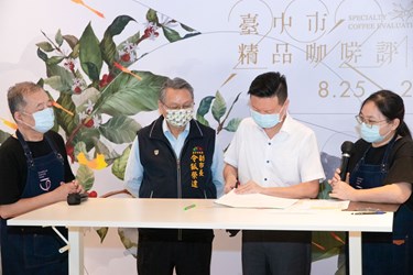 農業局長蔡精強表示,台中雖不是咖啡大產地,但卻是緯度最高的咖啡產地,台中咖啡產地集中在東勢、和平、新社、太平及后里等區,登記有案的咖啡農約104名,共計4個產銷班,利用山坡地造林與林木一同種植,減少日照提升咖啡品質,同時帶動山城台中休閒農業,台中不以量取勝,感謝台中市農會與農友積極提升咖啡品質,歡迎民眾至台中遊玩,品嘗一杯台中精品咖啡。