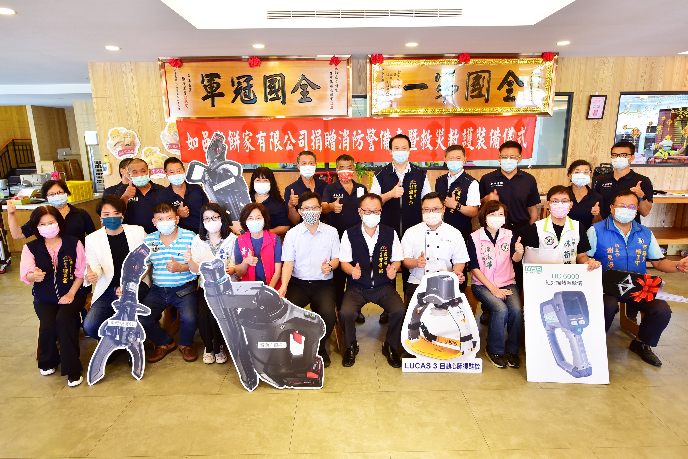 今日捐贈儀式包括立法委員張廖萬堅、市議員陳淑華、黃馨慧、林祈烽、張廖乃綸、羅廷瑋、西屯區長陳寶雲均到場見證,市議員楊正中也派代表出席致意。(8/28*7)*消防局