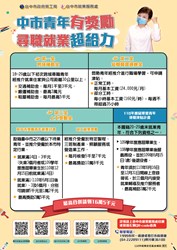 此外,台中市自108年起,整合中央及市府資源,推動「青年就業金安薪方案」,第一金「跨域補助金」,排除異地就業限制,給予交通、租屋及搬遷補助;第二金「短期職場適應金」,提供求職者職場學習機會並補助雇主薪資;第三金「上工獎勵金」,包含台中市獎勵青年就業計畫,另針對未就業青年投入特定缺工產業給予就業獎勵,連續就業最長可領取18個月10萬8千元的獎助,兩者合併申請最高可請領13萬3千元。