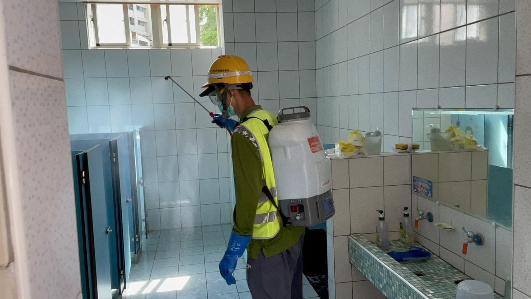 環保局長陳宏益表示,COVID-19本土疫情自5月爆發後,防疫消毒大隊同仁不敢大意,穿梭在大街小巷執行清消作業。為讓師生明日安心返校,防疫消毒大隊同仁出勤逾1,500人次,並出動水霧機630台次及消毒車450車次,全力支援完成454處高中以下公私立學校及公立幼兒園的校園室外公共區域清消,消毒重點包括1樓廁所、洗手檯、欄杆、扶手、座椅、遊戲設施等,尤其是學生手部較常接觸的地方,都徹底消毒一遍,以確保校園環境安全無虞。