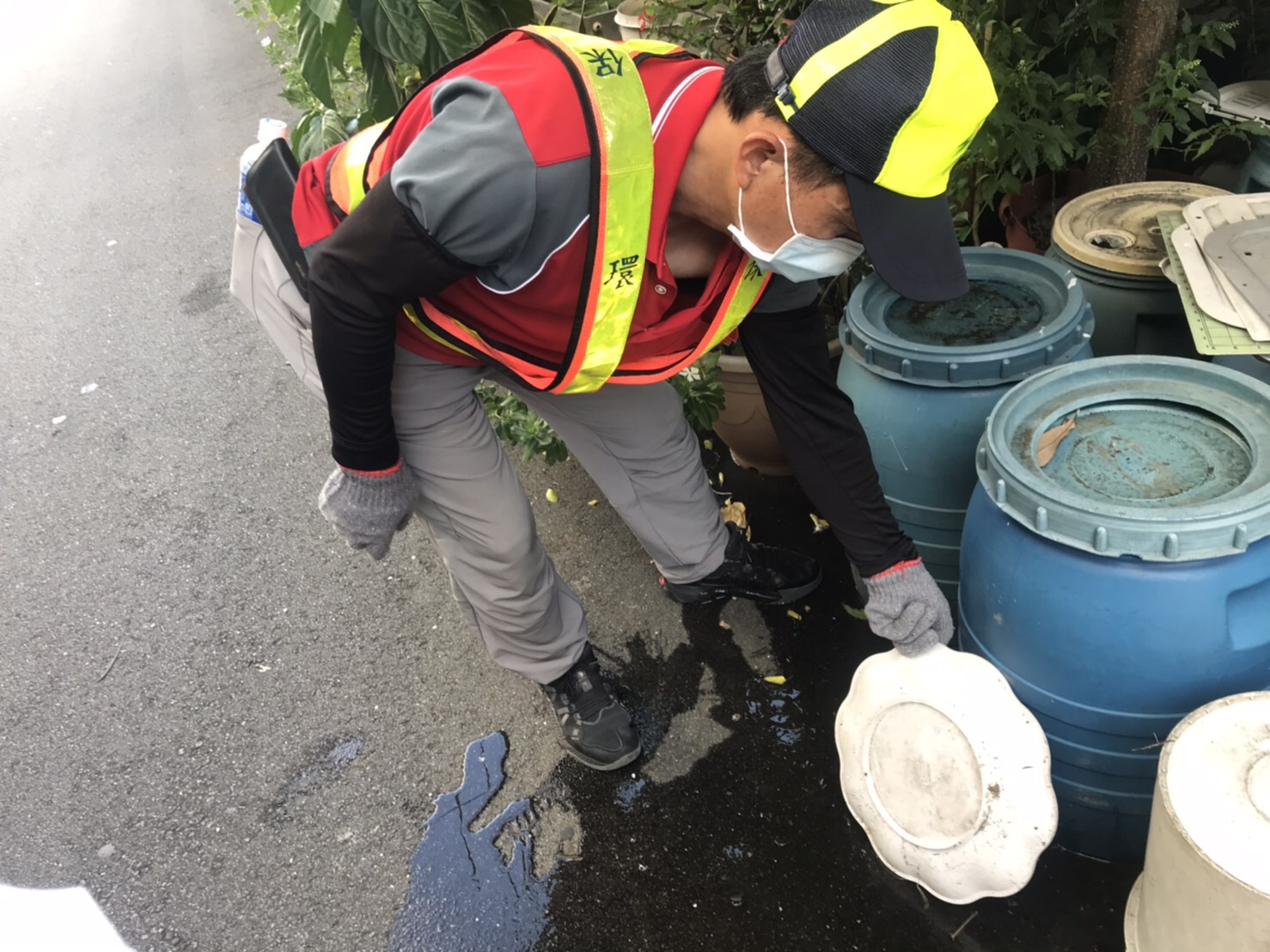 陳局長強調,時值登革熱好發期,登革熱防治一樣不能輕忽,因此動員各區清潔隊同步執行校園周遭登革熱孳生源清除工作,總計動員逾500人次,細心巡視檢查校外周圍道路積水情形,共計清除積水容器約550個、廢輪胎約60條,希望透過全面性防疫、防蚊,營造安心又安全的學習環境,替師生做好開學前準備。