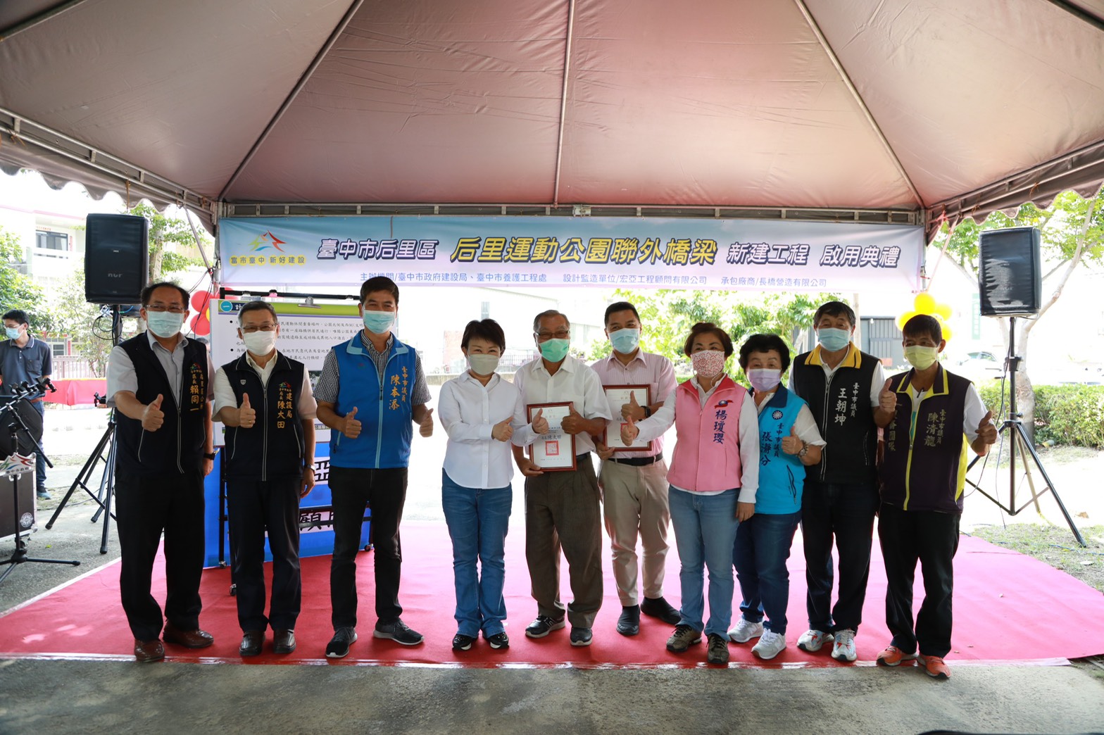 台中市后里森林公園部分區域有裸露、枯黃現象,在地企業「孟申機械」及5位市民侯霈姍、侯霈芳、侯沛綺、侯佳君、侯凱元熱心公益,捐贈面積約4,000平方公尺的大草皮,美化地方、造福鄉里,現在大草皮已優化完成,市長盧秀燕日前親自頒發感謝狀,盼讓后里森林公園越來越美麗。