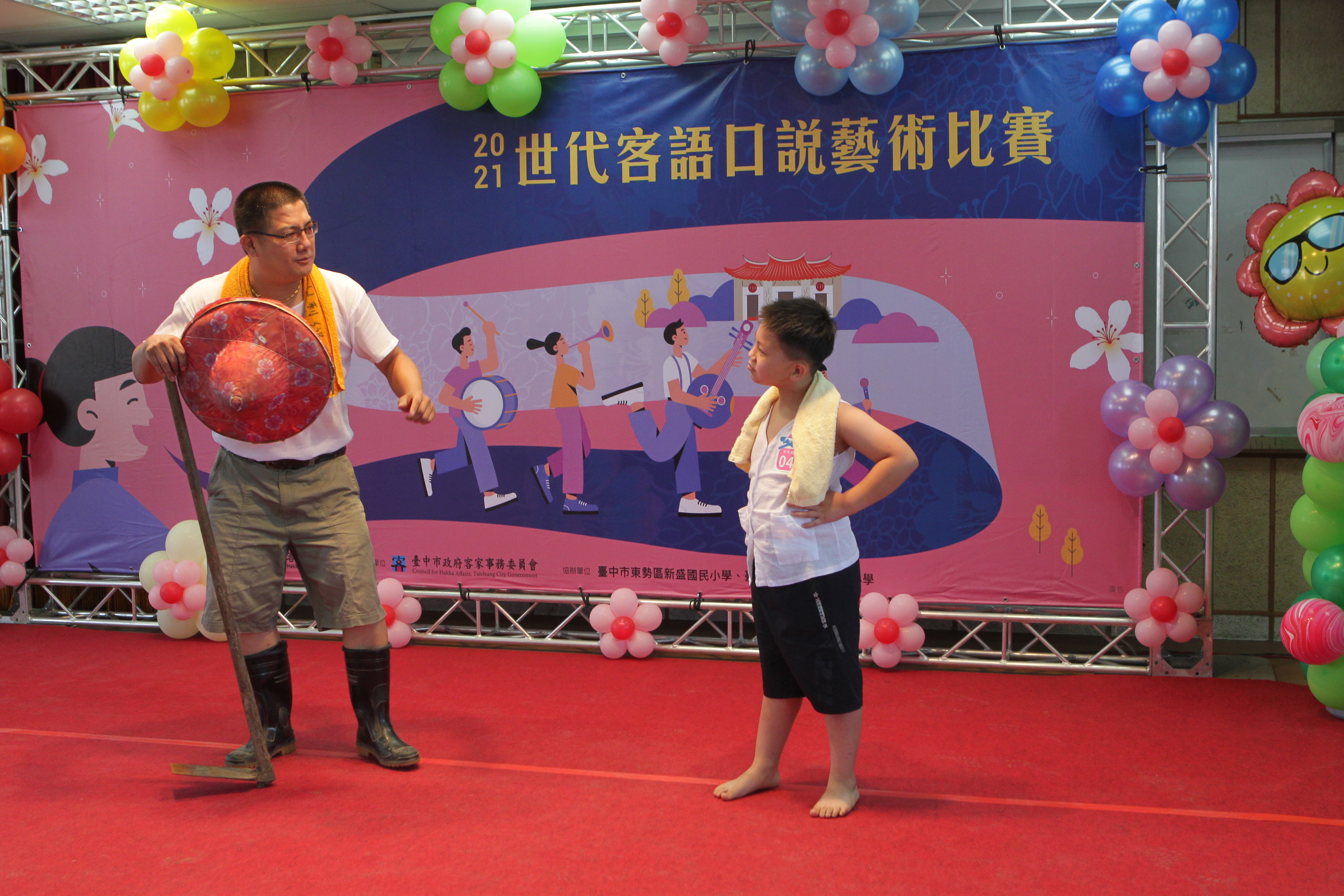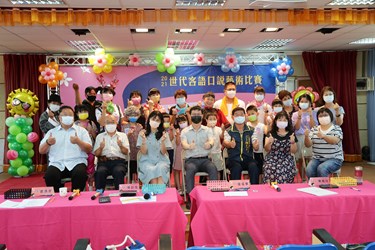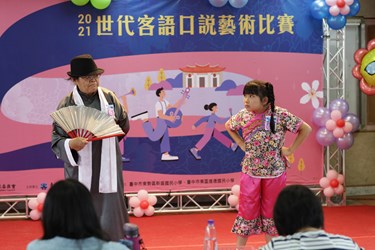 為推廣客語文化傳承,鼓勵世代間語言交流,台中市政府客委會特別舉辦兩場「2021世代客語口說藝術比賽」,無論是父母和子女、叔姪和甥舅、祖孫和師生,不同世代的大小朋友都可組隊參賽,首場今(5)日於新盛國小熱鬧登場。今年報名隊伍中有多隊祖孫同台,說學逗唱,讓現場笑聲不斷。客委會指出,透過親子互動共學,讓彼此更能親近客語、喜歡客語,讓語言傳承不間斷。