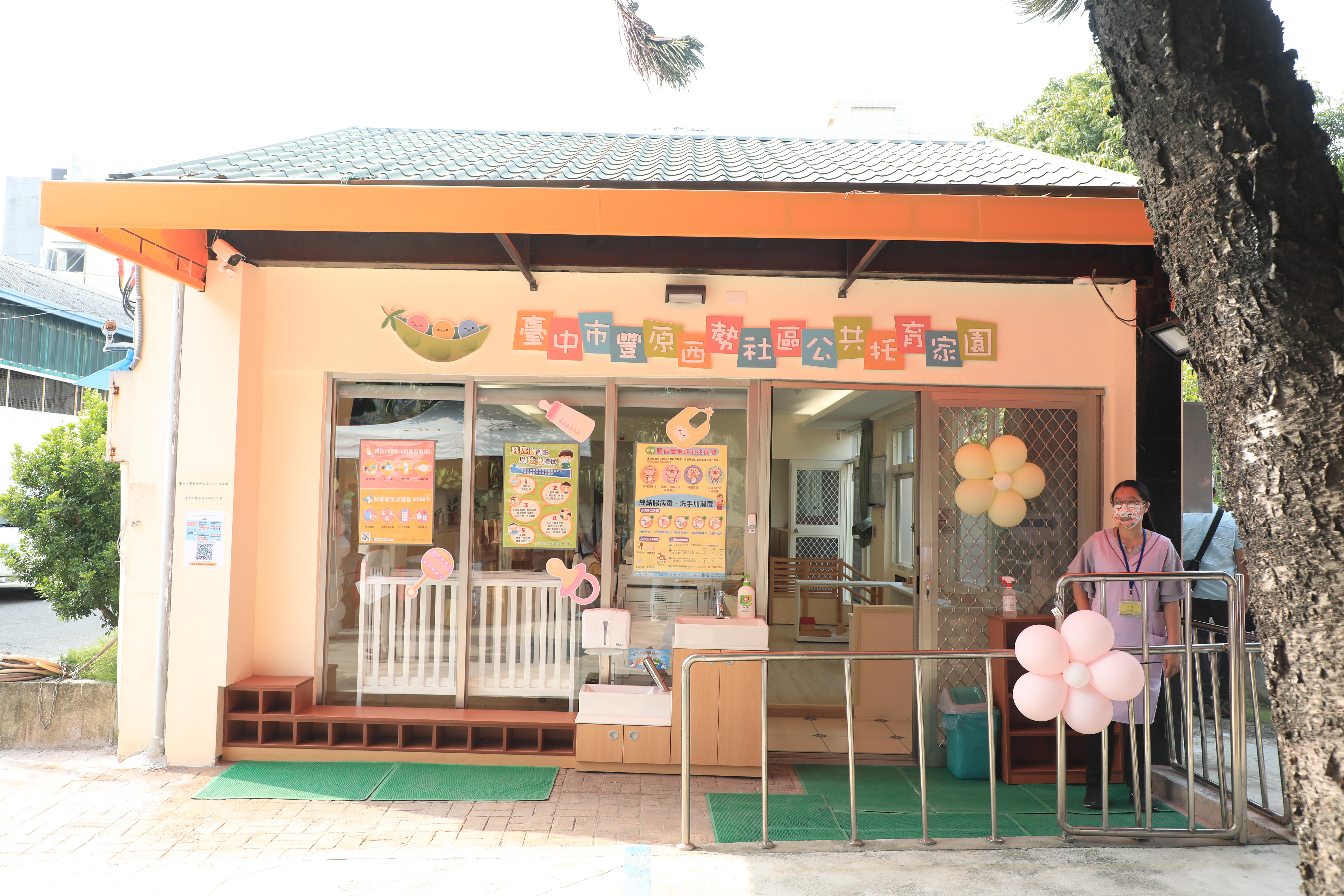社會局表示,豐原西勢社區公共托育家園設立於舊台中縣縣長官邸,家園空間明亮溫暖,緊鄰長青元氣學堂綠意盎然的大草皮,與碧綠青翠的各式植栽。家園除依法規劃活動區、睡眠區、盥洗室、清潔區,更採開放空間設計,提供各類型學習刺激,營造舒適、衛生安全與符合幼兒發展的最佳照顧環境;家園由4位專業人員照顧12名0至2歲幼兒,提供近便優質的托育服務,協助家長們安心就業、放心送托。