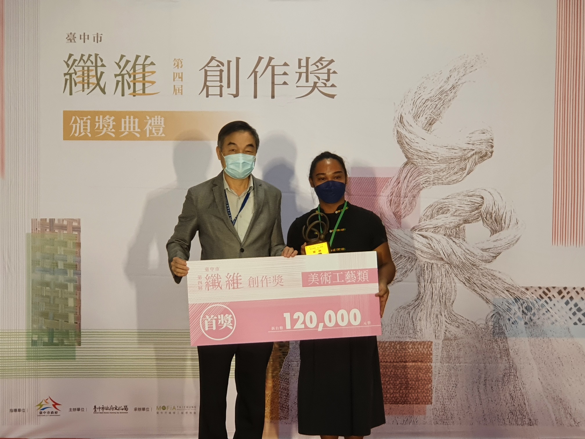 由台中市纖維工藝博物館主辦的「第四屆纖維創作獎」今(12)日舉行頒獎典禮,這項纖維工藝年度盛會共有70件創新作品入選,今年更創下兩大首獎均由30歲以下年輕創作者獲得的紀錄。王婷瑩以家鄉的大甲藺草創作生活工藝品《藺一個地方》,排灣族藝術家峇岦嵐偲˙旮札涅灆的美術工藝《臍待》象徵對母地的思念,入選作品於即日起至1121日在纖博館一樓創纖基地展出,歡迎民眾前來欣賞。