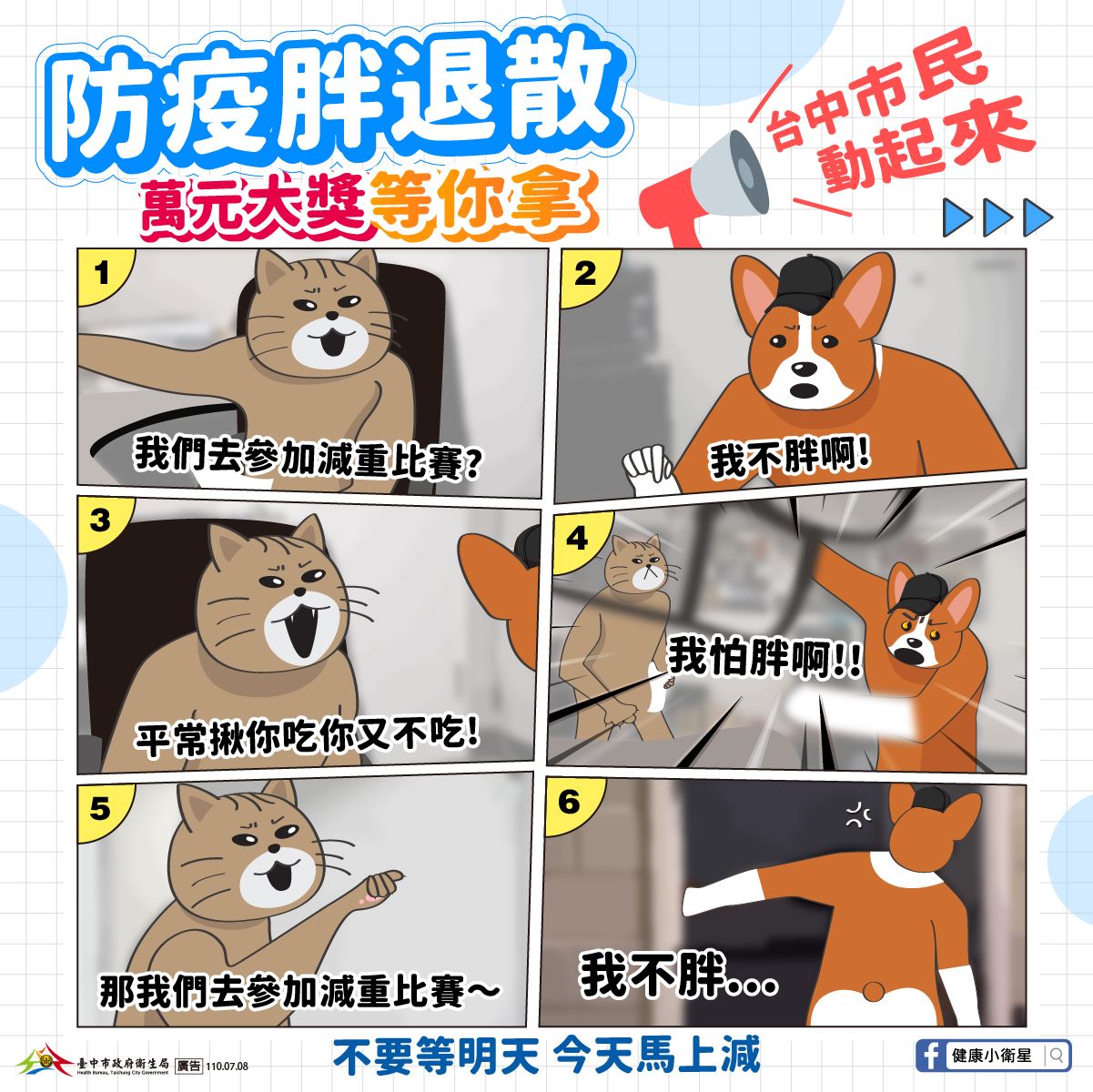 台中市政府衛生局舉辦「健康甩油競賽」,廣邀台中市各職場及18歲以上民眾(BMI>24)參與,活動分個人組及團體組,個人組減重公斤數最多者將頒發5,000元等值禮券,並加碼再抽500元禮券限量50名;團體組最高將可獲得1萬元等值禮券,競賽期程至9月30日截止,歡迎市民踴躍參與,一起管理體重,讓身體更健康。