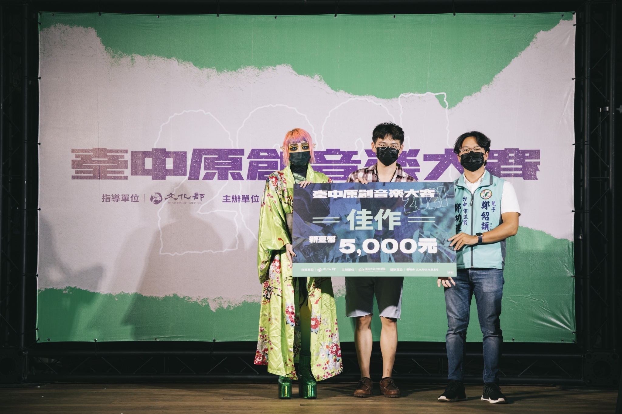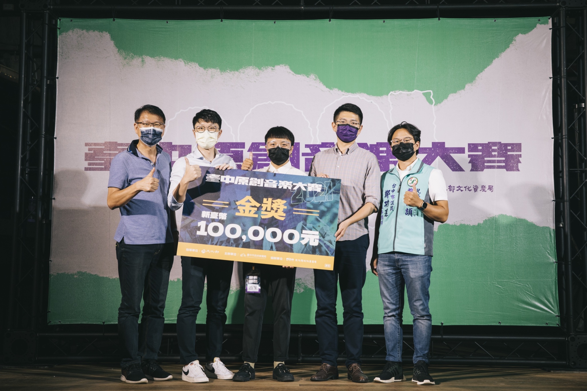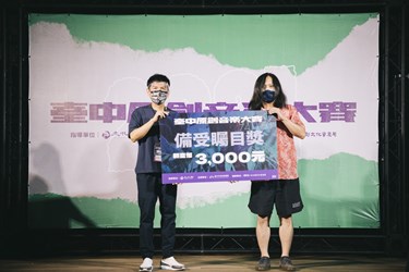 新聞局表示,此次台中原創音樂大賽由「遊樂ULove」奪下金獎,銀獎則由「王彙筑Hui Chu Wang」、「草屯囝仔」、「等阮返來」獲得;「LadyTrouble草包小姐」、「庸俗救星」、「靈魂咆哮Roaring Atman」則抱走銅獎,最後佳作由「Wednesday and Bad To The Bone」、「潛夢島Dreamdive Island」拿下。