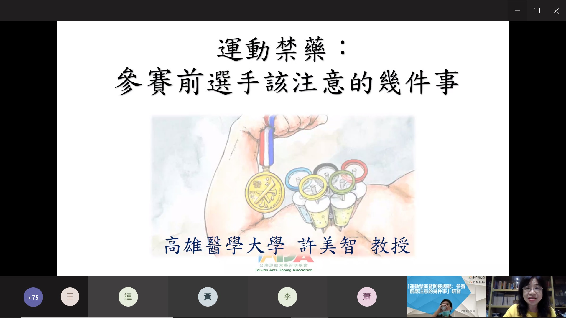 台中市政府運動局昨(24)日視訊舉辦「運動禁藥暨防疫規範:參賽前應注意的幾件事」研習,邀請講師解說選手飲食及用藥注意事項,避免誤用禁藥,還有因應新冠肺炎最新防疫規範應注意的參賽事項,維護選手權益及運動生涯。