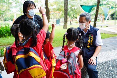 陳局長表示,為期兩梯次的教育活動針對不同年齡層的孩子設計,今日聘請國立台中教育大學水環境教案設計團隊林昀萱老師帶幼兒園學習「水撲滿及滯洪池」知識;16日邀請台中市立圖書館李科永紀念圖書分館志工隊陳韻彤副隊長為國小學童導覽「會吸水的公園」,並融入濕地、中水小旅行、水的競賽,盼藉由多元化的環境教育課程,促使孩子多接觸自然、認識居住環境,共同愛護珍貴水源。