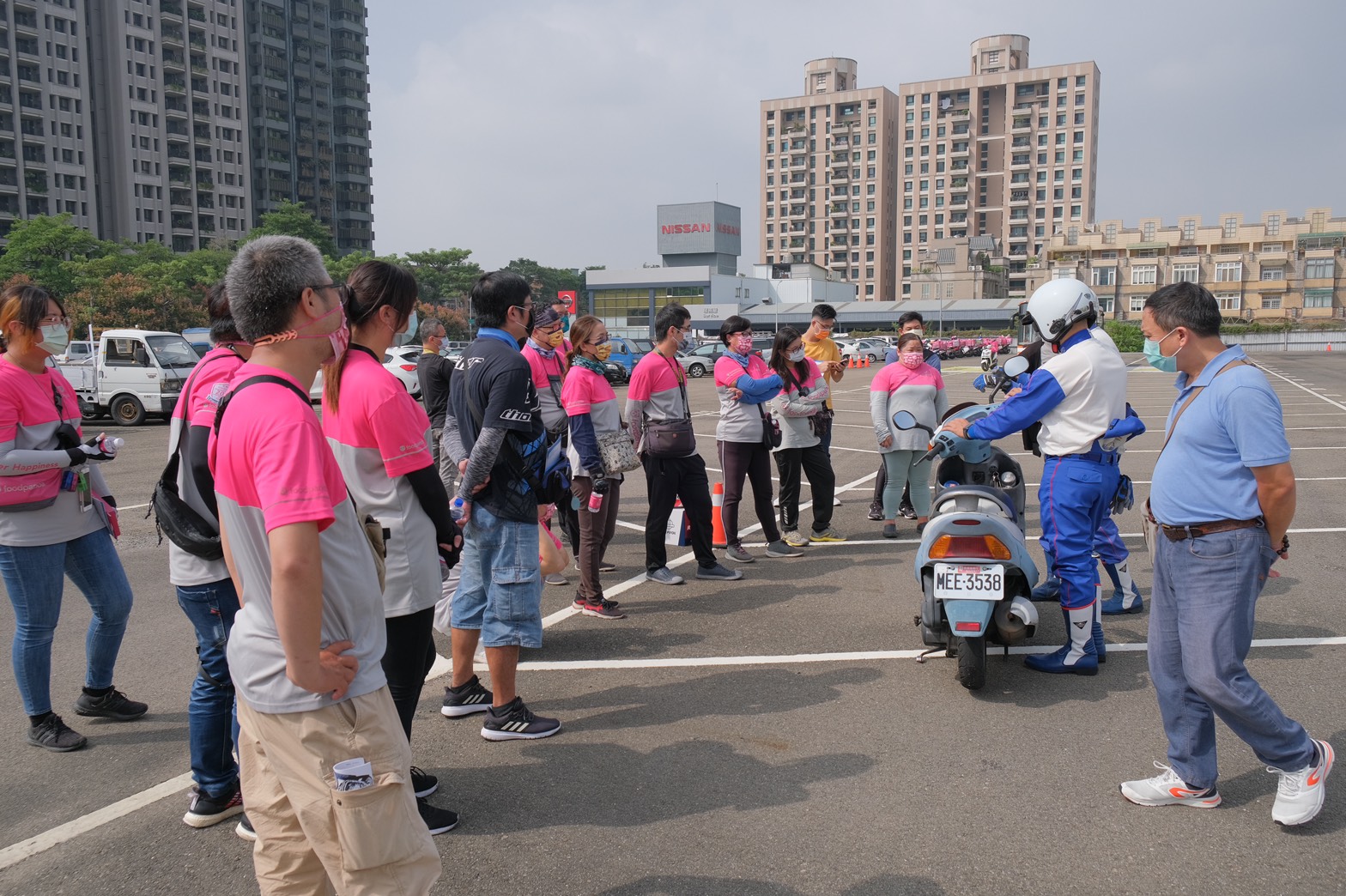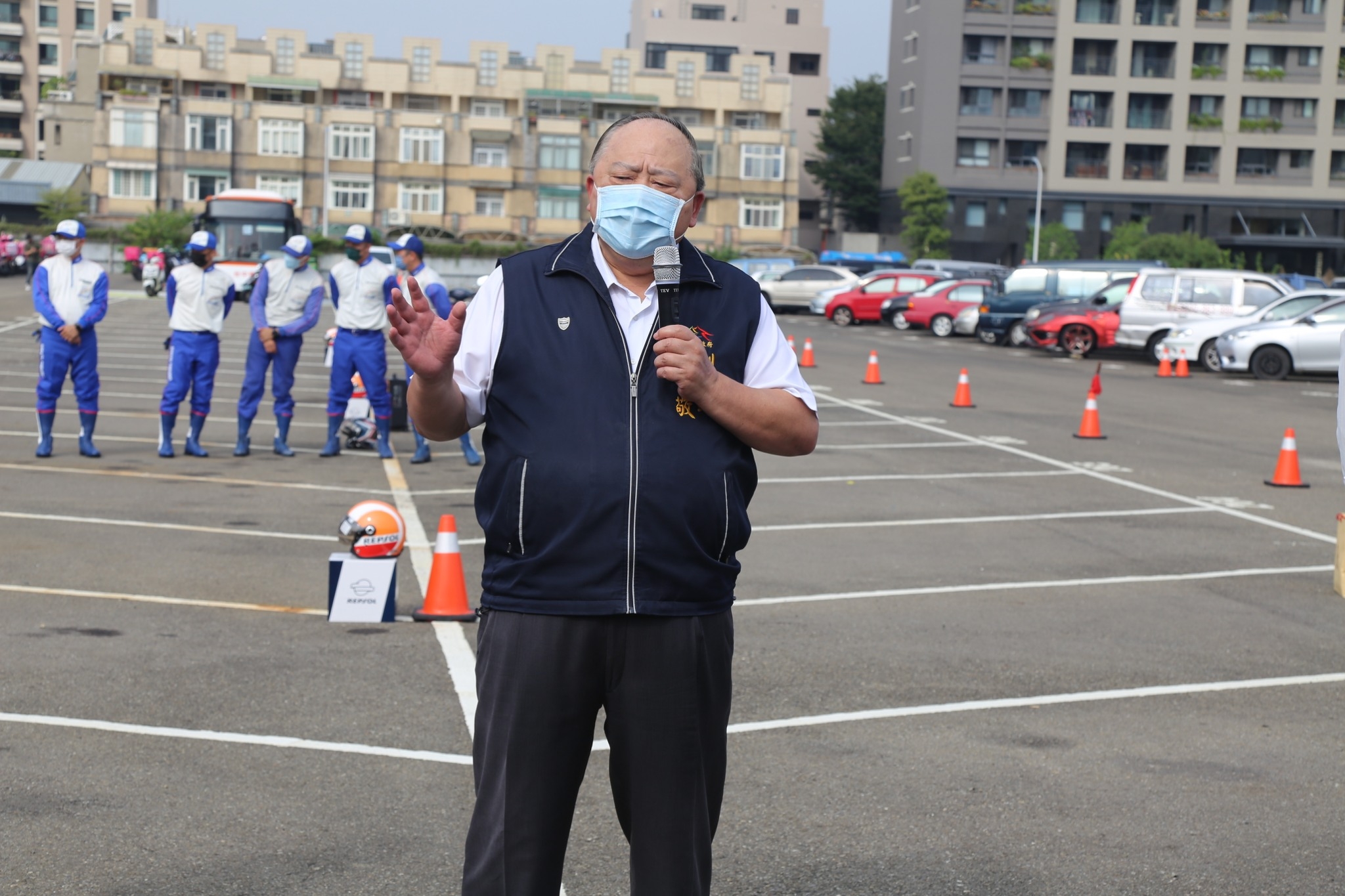 今日活動一開始先示範錯誤騎乘姿勢可能造成的危險及車速煞停距離認知,並透過實際操作讓外送夥伴們身臨其境體驗什麼是「煞得住,才安全」;接下來更融入道路上大型車輛常見危險情境如內輪差及視野死角,運用大型警備車及公車分別動態演示如何在這些危險情境下安全騎乘,最後再透過事故案例分析路權及防禦駕駛觀念,也提醒外送員遇到職災時該如何請求賠償,保護自身權益。包括陳副市長、警察局長蔡蒼柏、交通局主任秘書郭志文、警察局交通大隊長陳松寅、勞動檢查處長邱怡川都到場關心。(10/15*7)*交通局、警察局