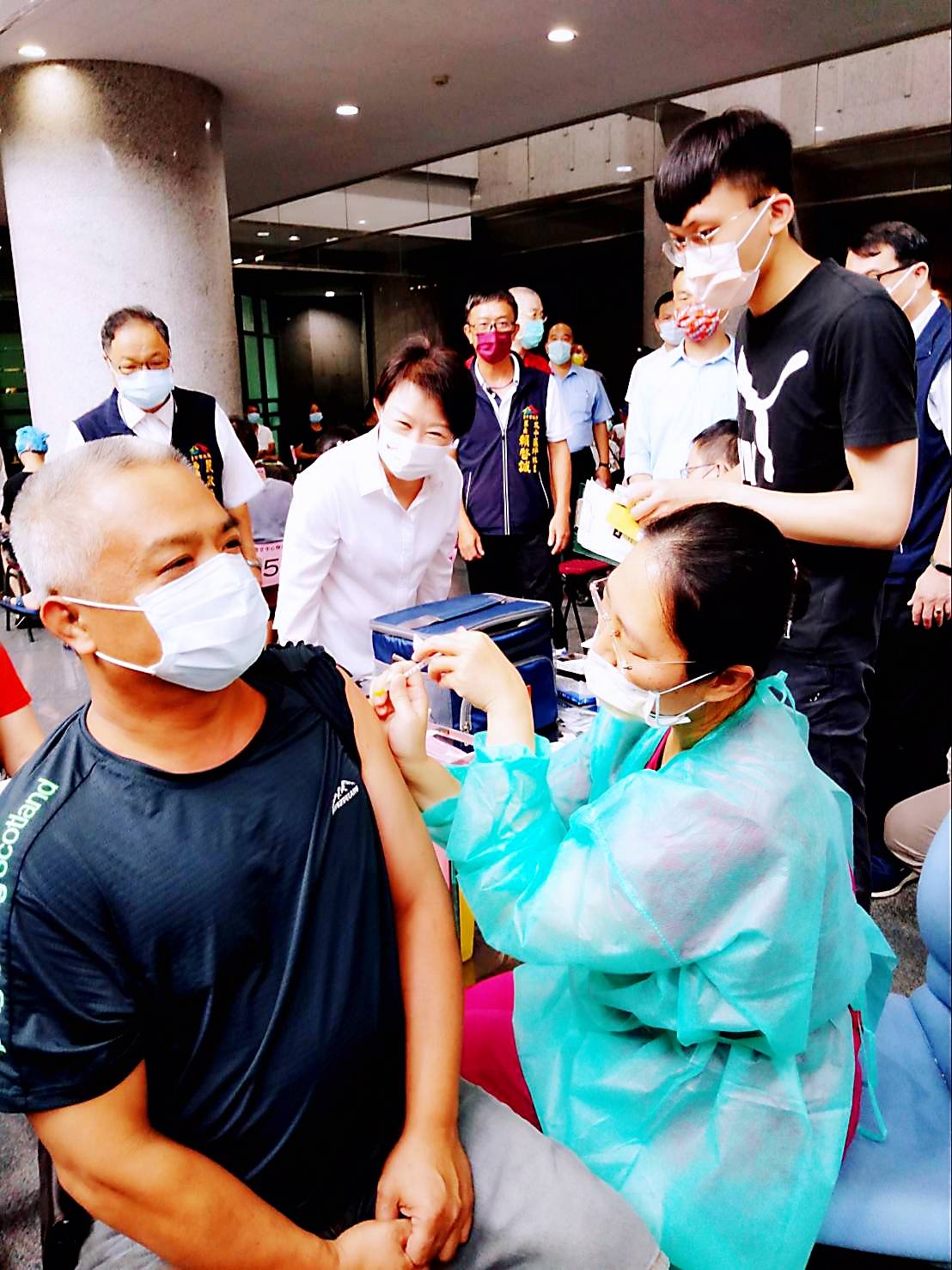 昨日第11期新冠疫苗「快打站2.0」施打首日,包括盧市長、民政局長吳世瑋、文化局長陳佳君、太平區長許貴芳,以及太平區光華里長黃鐵騫、坪林里長賴啓誠等人均到場關心。(10/ 16*8)*民政局