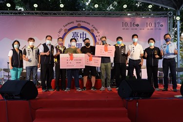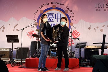 台中市政府文化局舉辦2021台中樂器節,今(16)、明兩日在后里麗寶樂園熱鬧登場,今年延續舉辦樂器演奏比賽,總獎金30萬元,廣邀爵士鼓、薩克斯風、長笛等優秀選手角逐,參賽者實力相當,經評審幾經討論後,選出各組優勝名單,由文化局長陳佳君頒獎;另現場還舉辦抽獎活動,由陳局長抽出幸運民眾獲得大獎薩克斯風一支。
