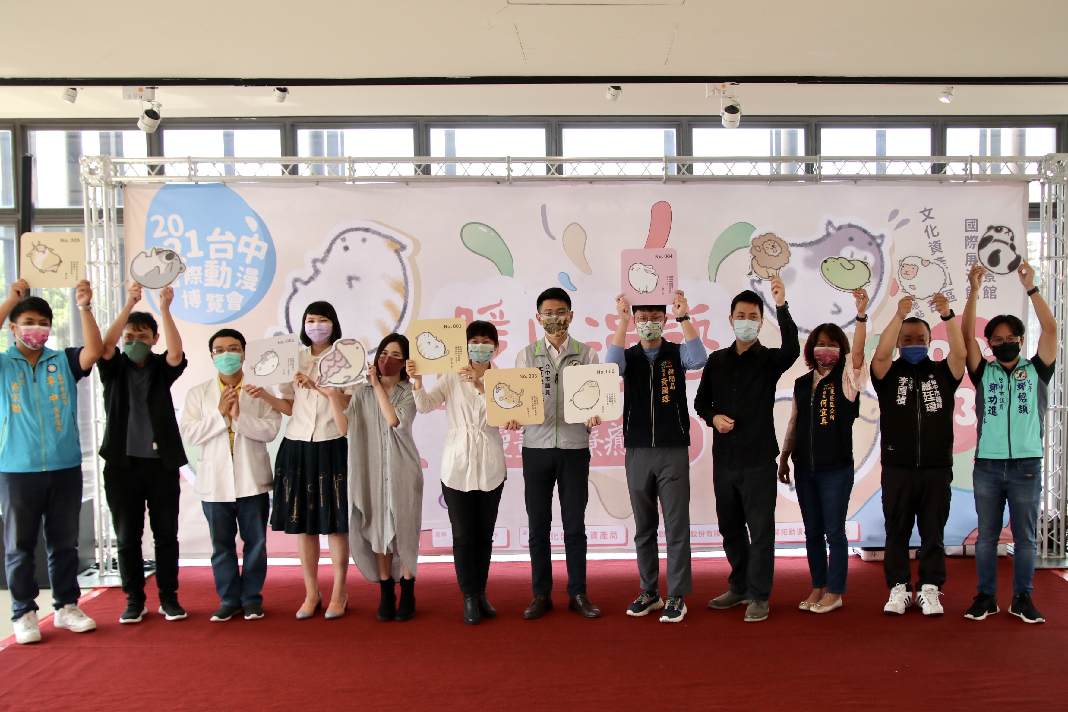 台中市政府新聞局今(23)日於文化部文化資產園區舉辦開幕記者會,邀請此次參展作者包含執業之餘斜槓成為漫畫家的雷亞、白日雨等醫生參與,而參展講師影繪、Salah.D、漢匠模型白鬍渣等人更自主COSPLAY盛裝出席。為呼應今年主題,開幕記者會上特別安排白日雨醫生與策展人暨台灣動漫畫推廣協會理事長蘇微希分享20字暖心箴言動物小卡,從醫者角度解析身心靈的療癒處方箋,邀請民眾到展場內領取專屬的「處方箋動物小卡」。