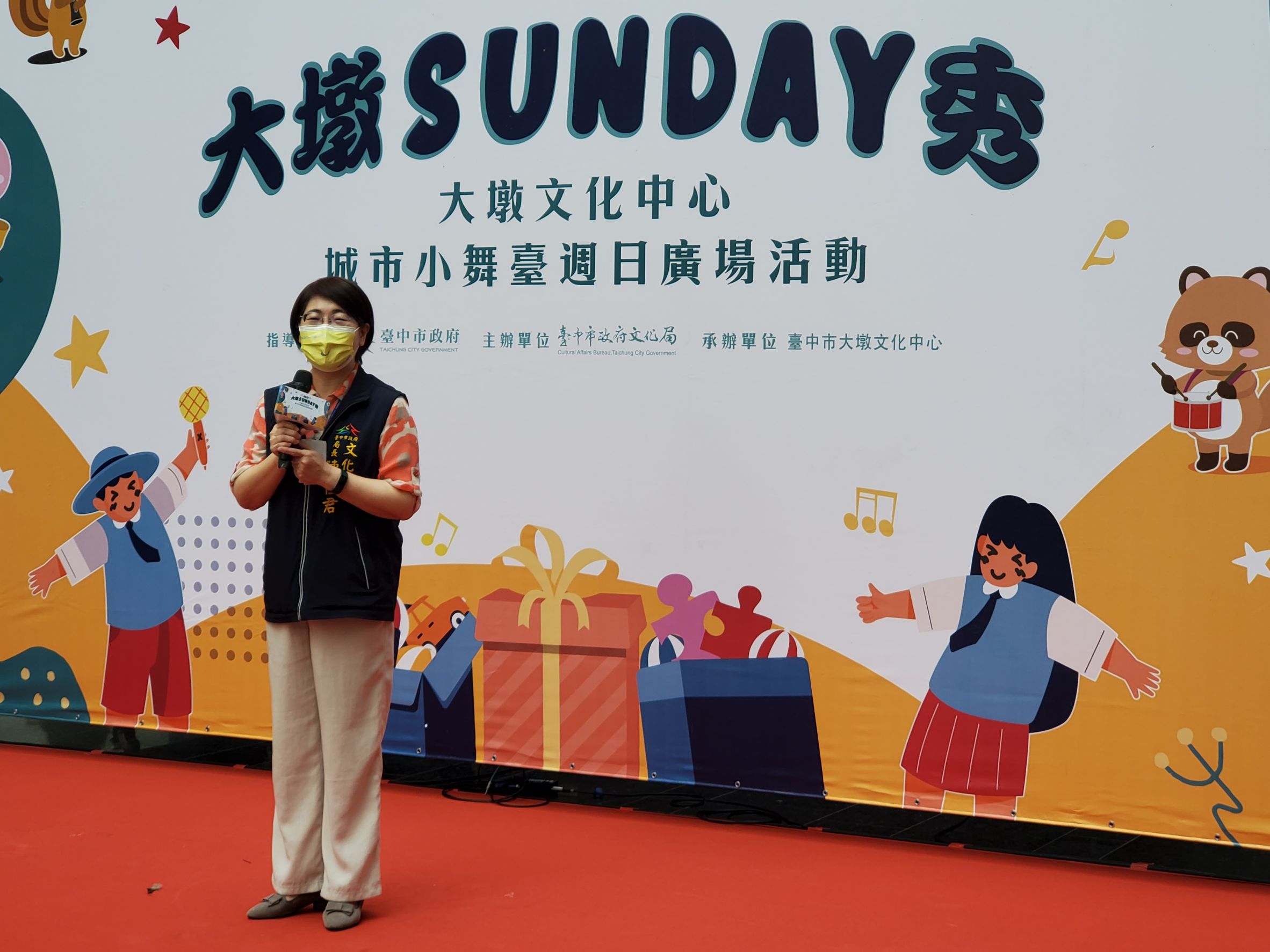 今(29)日舉辦「2021大墩SUNDAY秀」記者會。文化局長陳佳君表示,文化局致力推動藝文活動在地化與生活化,大墩文化中心是台中城區最受歡迎的藝文場館之一,有重量級藝術家展覽、班數最多的藝文研習、青少年歌唱舞蹈競賽,每年規劃精彩多元的藝文活動與市民同樂,隨著疫情趨緩,在秋高氣爽的11月,連續3個週日午後,大墩文化中心以「夢想、童伴」主題,將戶外城市小舞台打造成熱情的歡樂樂園,將台中點綴為繽紛且充滿希望的活力城市。