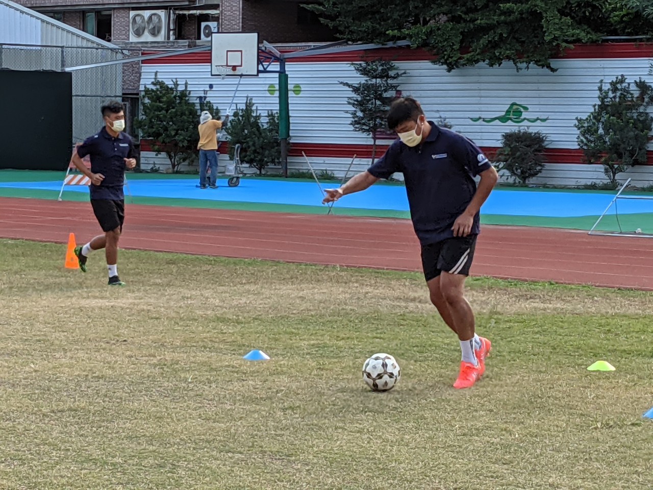 教育局特別感謝此次研習活動承辦單位五權國中及台中市海線足球協會,在配合中央疫情指揮中心相關指引下,落實出入口健康管理、學員人數限制及實聯制登記,不僅全程佩戴口罩,並安排課後清消作業,確保研習學員和學校師生的安全。昨日活動包括教育局科長劉姵君、五權國中校長陳進卿、中華民國足球協會副理事長呂桂花教授、中市海線足球協會總幹事趙志宏都到場鼓勵學員。(10/30*18)*教育局