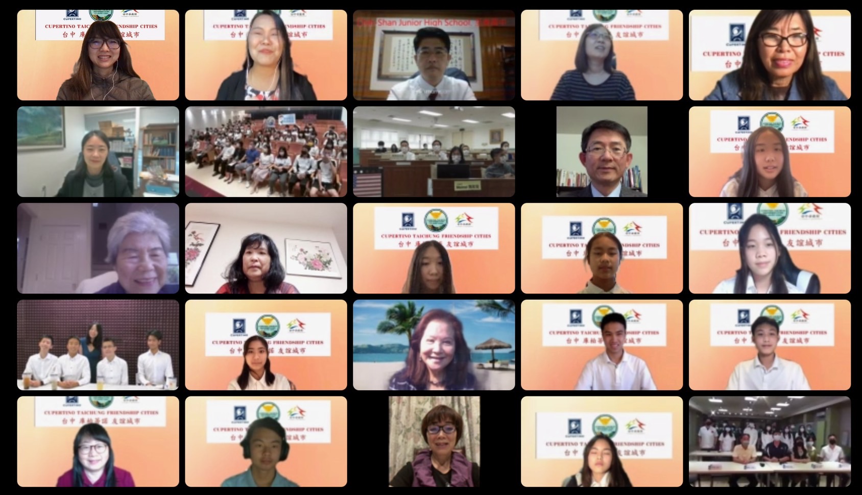 此次視訊交流受雙方高度重視,駐舊金山台北經濟文化辦事處副處長李盈興、庫柏蒂諾市魏虹議員、台中-庫柏蒂諾友誼城市(CTFC)傅紅玉首席顧問及李萍萍顧問均上線給予學生勉勵,庫柏蒂諾市長Mayor Darcy Paul也以影片方式給予祝福。