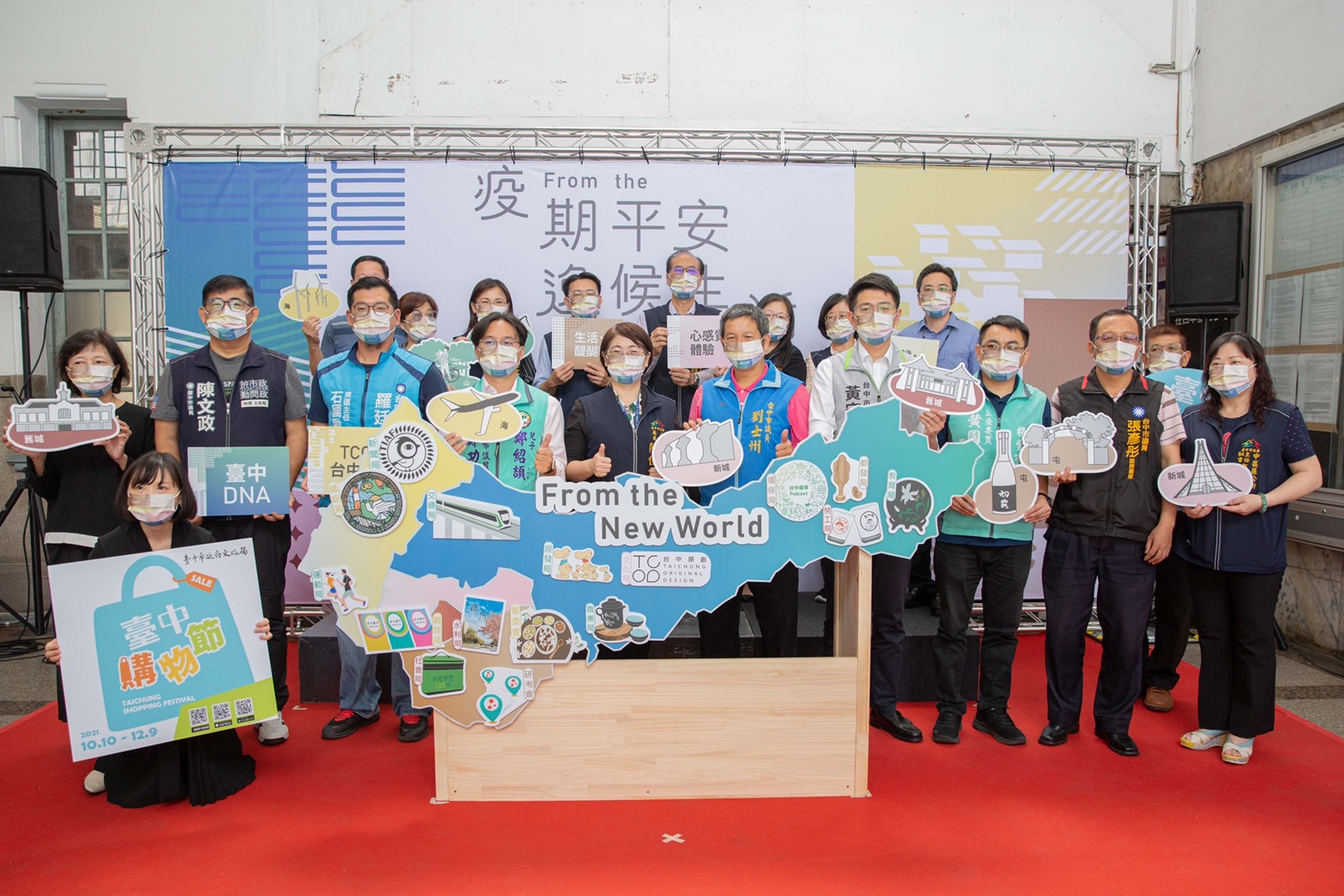 今日開幕儀式包括文化局長陳佳君、市府17個局會代表、市議員黃守達、劉士州、台鐵局台中營業所副理陳政文、台中驛鐵道文化園區襄理賴珮如,以及立委黃國書、市議員陳文政、鄭功進、羅廷瑋、張彥彤等服務處團隊及區公所代表等共同出席,為台中地圖貼上文創特色的標誌,象徵山海屯城各異其趣的文化背景,交融而成台中獨有的生活風格。(11/4*8)*文化局