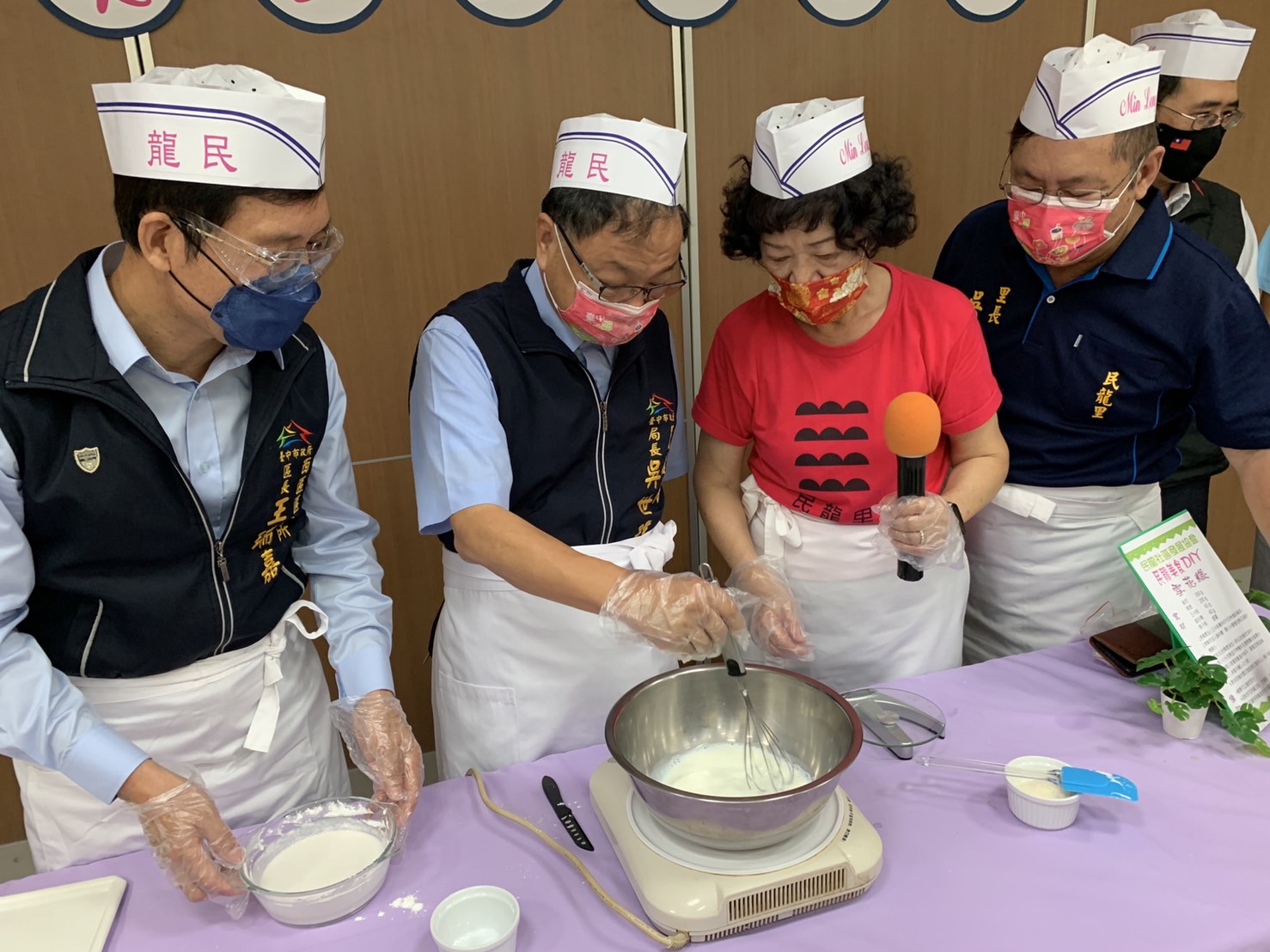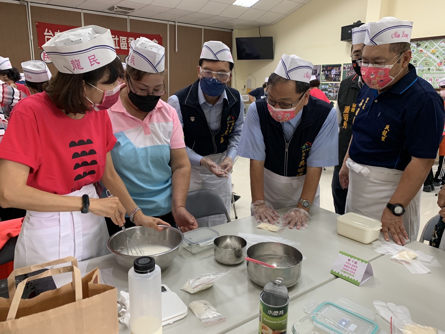 台中市西區民龍社區發展協會日前在和龍、民龍聯合里活動中心舉辦「美食DIY-雪花糕教學活動」,藉由美食製作教學,增進社區居民互動機會,同時推展人文關懷與社福照護。民政局長吳世瑋代表市長盧秀燕出席活動,並與西區區長王瑞嘉一同穿戴廚師帽和學員體驗製作雪花糕的樂趣,現場氣氛歡樂。