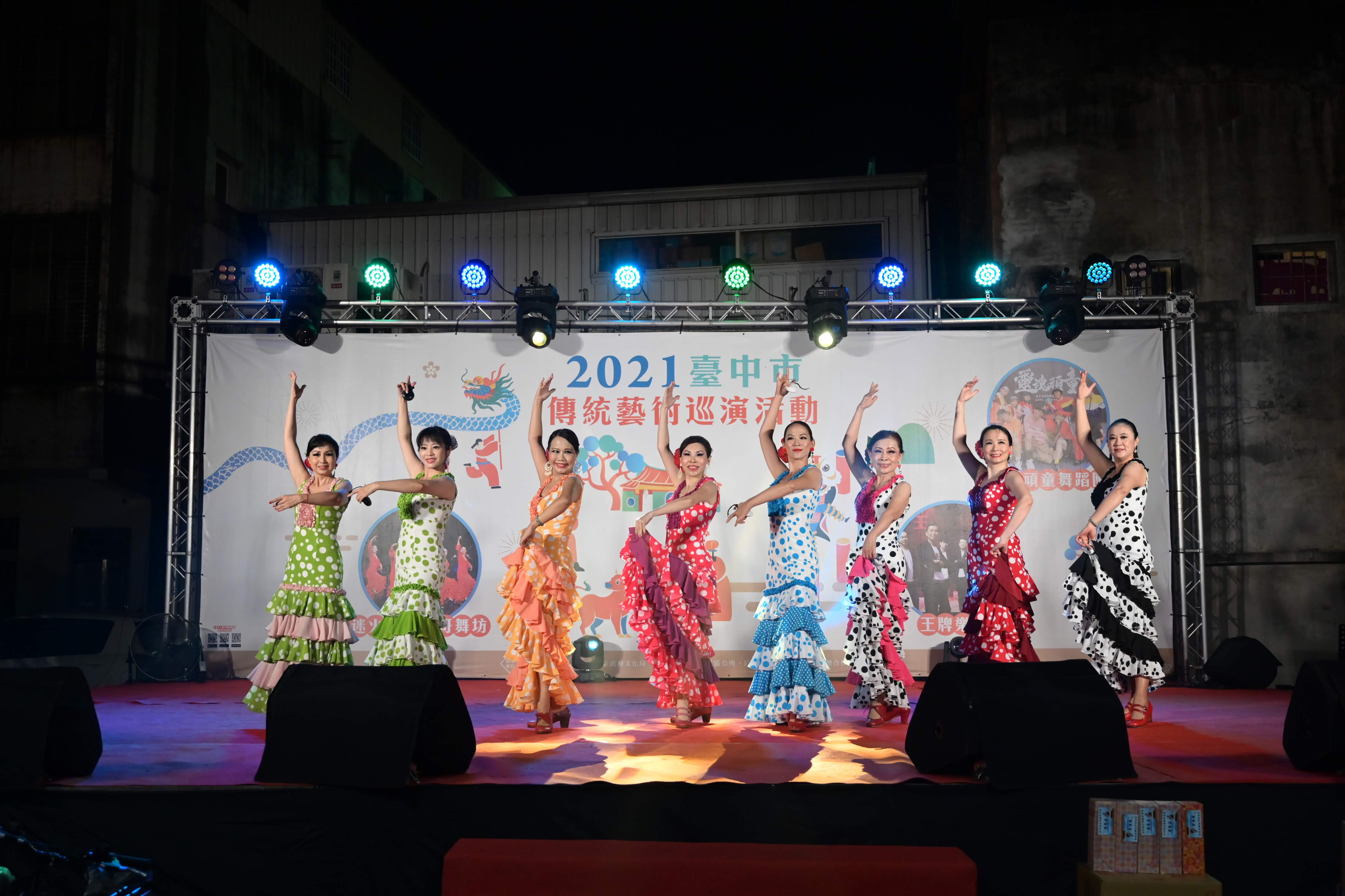 「2021台中市傳統藝術巡演活動」共規劃5場,第4場昨日在后里慈厚宮團隊匯演,由在地優質團隊靈魂頑童舞蹈團帶來活力十足的街舞、流行舞蹈,還有天籟般嗓音的女主唱領軍、全方位表演風格,深受觀眾喜愛的王牌樂團及由迷火佛拉明哥舞坊帶來熱情的踢踏踩西班牙佛朗明哥舞蹈。