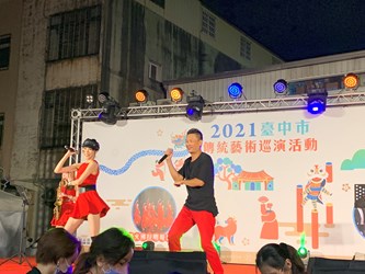 台中市政府文化局自去年開始辦理「台中市傳統藝術巡演活動」,於各區進行傳藝匯演,傳承傳統藝術,提供市民就近觀賞機會,廣受好評。今年活動前3場於大里區、西區及龍井區舉辦,第4場昨(5)晚於后里慈厚宮前演出,邀請靈魂頑童舞蹈團、王牌樂團及迷火佛拉明哥舞坊等優質團隊帶來多元豐富的表演節目,現場還有摸彩活動及贈送限量傳藝DIY小禮包,與民眾同樂。