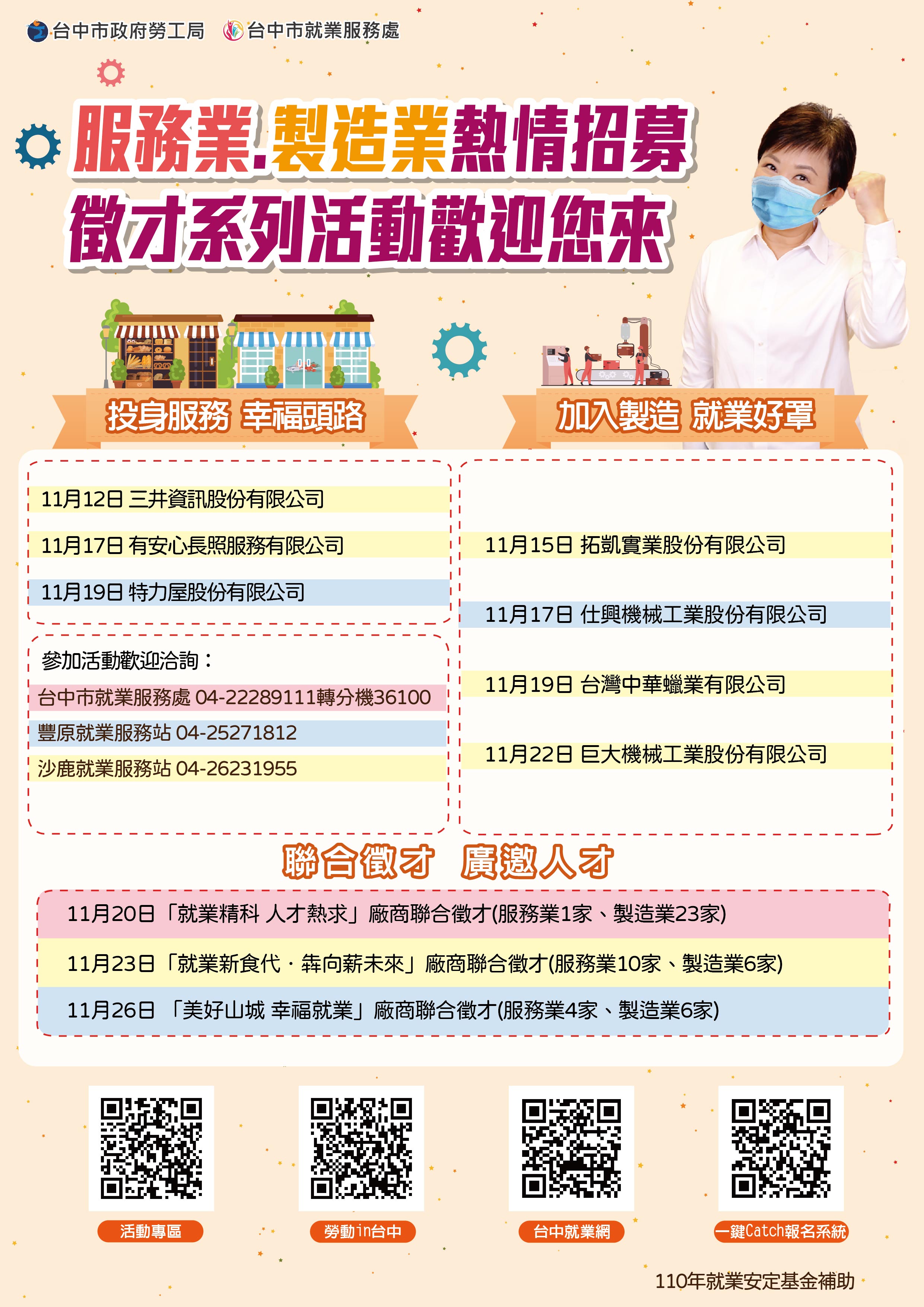 聯絡人:台中市就業服務處 高小姐