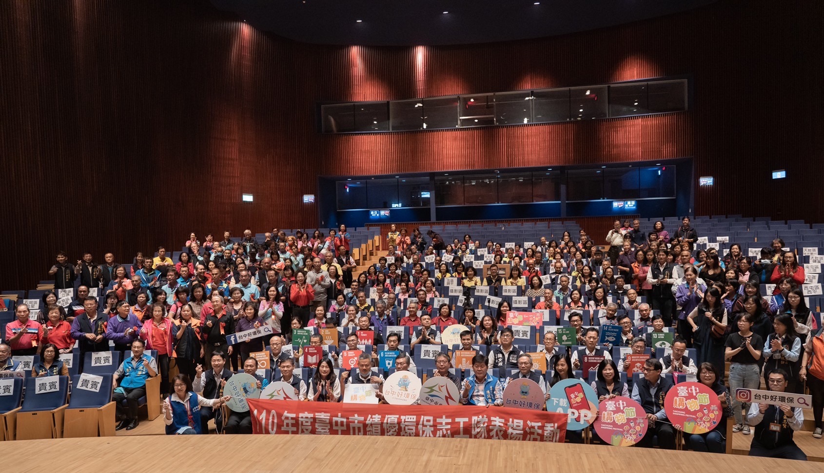昨日表揚大會,包含台中市議會市議員劉士洲、陳文政、陳政顯,台中市多位區長、區公所主任秘書等人均到場致賀;市議員朱暖英、何文海、沈佑蓮、賴順仁、謝明源、羅廷瑋及鄭功進等服務處皆派代表出席,肯定環保志工的努力。(11/18*17)*環保局