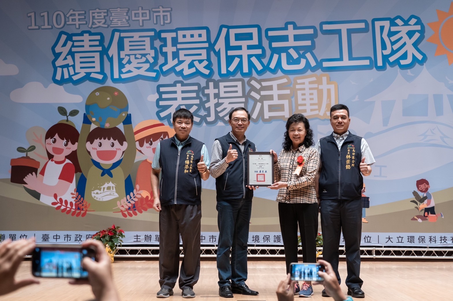 110年績優環保志工隊評鑑結果出爐!台中市政府環境保護局昨(17)日在台灣大道市政大樓舉辦「110年績優環保志工隊表揚活動」,共有53隊獲得特優,環保局表示,感謝維護市容環境的「生力軍」,讓大台中居住環境「市容更乾淨,環境更優質,生活更健康」,同時提醒民眾打掃環境時,仍要做好自身防疫。