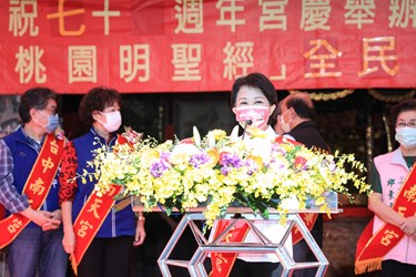 台中南天宮今(21)日舉辦70週年宮慶,遵循古禮舉行三獻大禮團拜祈福,同時表揚160位國中小孝行楷模,弘揚孝道正能量。市長盧秀燕前往致慶表示,感謝南天宮樂捐助學裝冷氣,全市高中職以下近350所學校,今年底或明年初冷氣將全數裝設,新冠疫苗第1劑接種已破8成,購物節消費登錄金額飆到161億元,拚經濟全台遙遙領先。