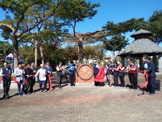 另外,藝術砌築職類獲獎的「黃文才、李冠彬」、「黃連成、賴聖賢」、「蔣原福、蔣昇光」三組職人暨新秀,在太平區八德公園合力完成砌築作品「薪火相傳」,從設計、施作、鋪貼磁磚、抿石子等皆一手包辦,作品融入蜜蜂及花卉意象的設計巧思,結合在地農產特色,營造打卡新亮點。