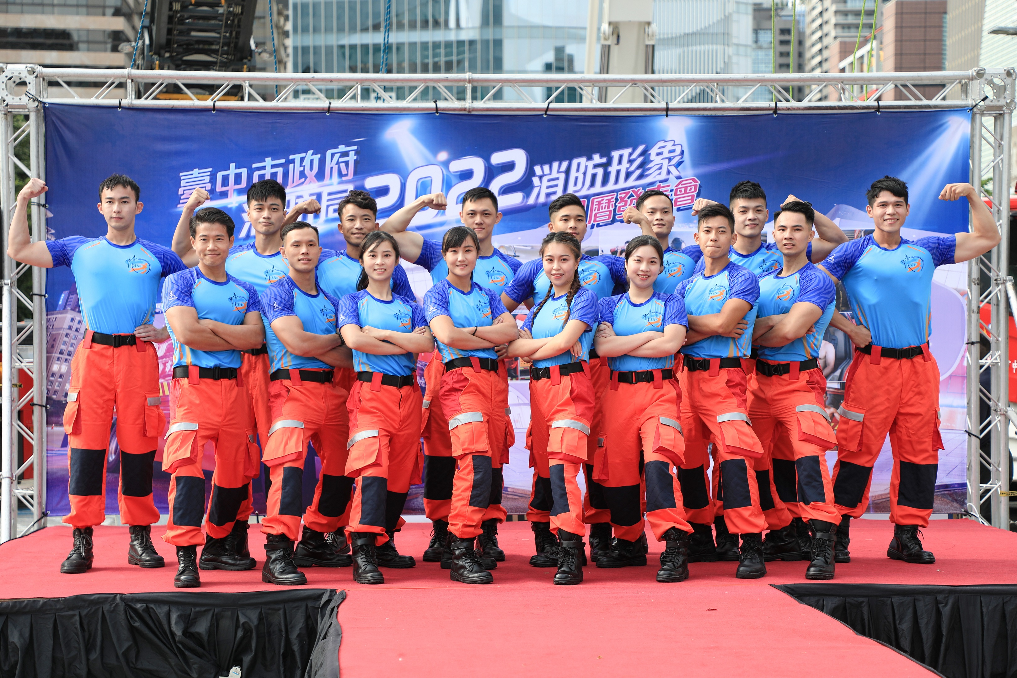 台中市政府消防局今(22)日發表2022年消防形象月曆,這次由12位男性及4位女性消防形象大使參與拍攝,月曆除了展現消防工作專業的一面,每個月份更分別介紹水箱車、直線雲梯車共12款消防車輛,還有防災宣導提醒。市長盧秀燕出席表示,感謝保衛城市的消防人員,期望透過月曆的傳達,大家一起愛惜守護消防英雄們,同時提升防災知識。