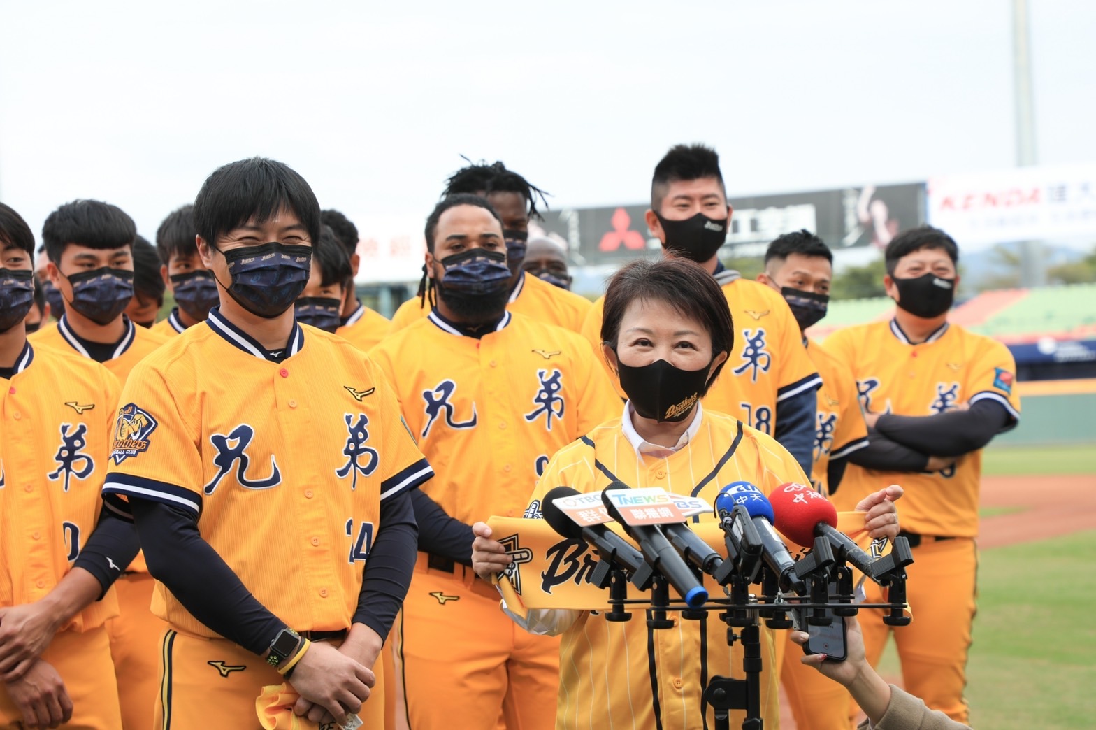 現場媒體詢問盧市長是否比照去年與副總統賴清德打賭冠軍戰,盧市長說,她要想一下,不過最重要的是希望大家專心一致團結起來,幫中信兄弟加油打氣。