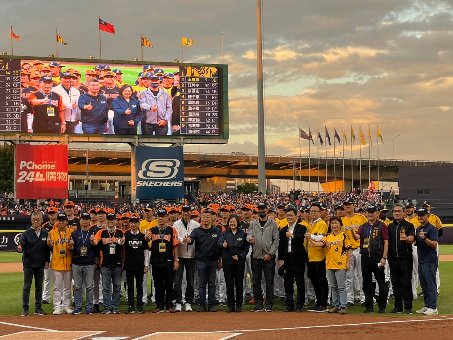 中華職棒32年總冠軍賽首戰今(27)日在洲際棒球場開打,台中地主隊中信兄弟以上半季冠軍及全年勝率第一之姿迎戰統一獅,吸引滿場球迷湧入,台中市政府副市長黃國榮在運動局長李昱叡陪同下到場為中信兄弟加油打氣,兄弟隊最終不負眾望以20在主場奪下首勝,期許大賽一舉奪得總冠軍。