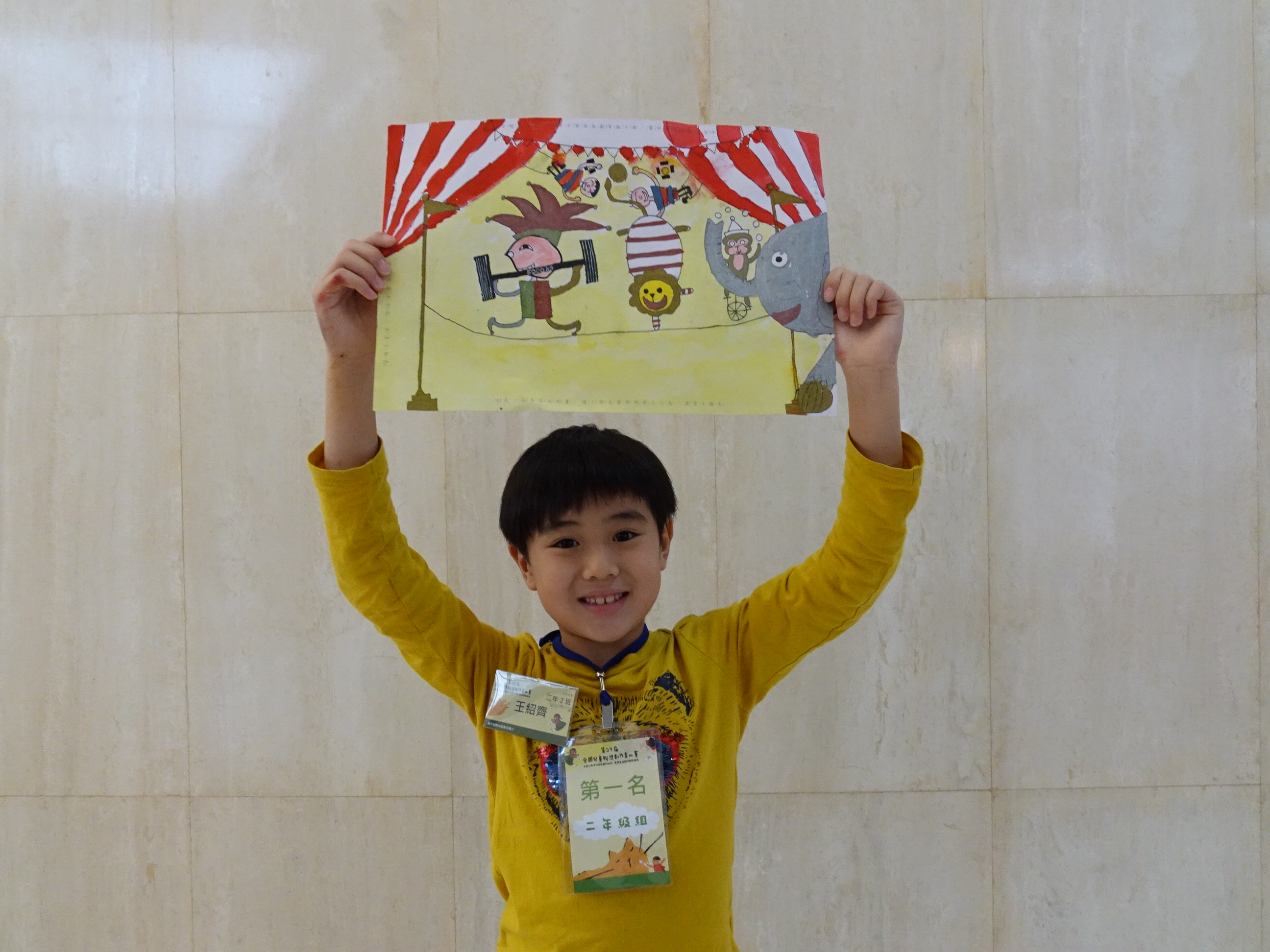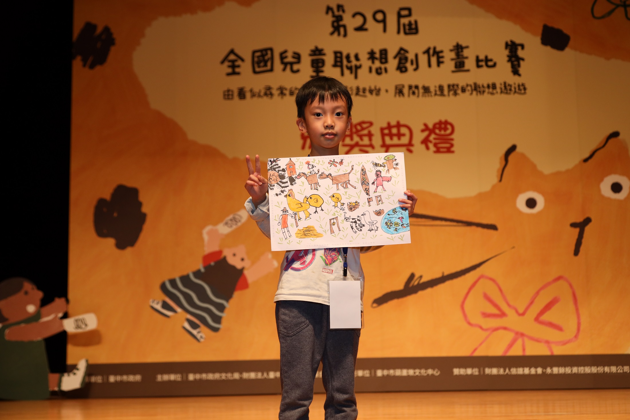下午的頒獎典禮特別邀請特技空間帶來結合功夫與廚藝的特技饗宴「功夫廚房,上菜了!」揭開序幕,並由文化局副局長曾能汀頒發前三名獎項。決賽評審表示,今年的得獎作品更見創意表現及豐富多元的畫法,其中一年級呂品澄的動物農場,思惟豐富內容多元;二年級王紹齊以少見的馬戲團主題,構圖完整、色調對比及技法成熟,呈現歡樂氣氛;三年級陳玥筑載口罩在海邊玩樂,反映疫情時想要度假玩樂的心理,並以敏銳觀察力細繪影子,感受豔陽的炙熱陽光。