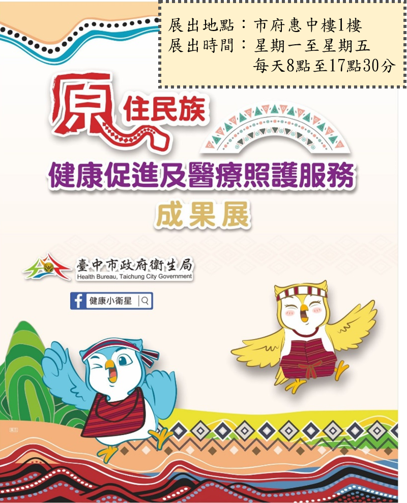 維護原鄉地區民眾健康,台中市政府持續於和平區導入醫療及公共衛生服務,今(6)起至12月17日止,週一至週五8時至17時,於台灣大道市政大樓惠中樓1樓舉辦「110年原住民族健康促進及醫療照護服務成果展」,展出部落社區健康營造計畫、就醫及長期照護資源(含社福機構)使用交通費補助計畫、全台最高海拔復健站及佈建和平區長照ABC據點等,讓民眾更了解偏鄉醫療服務。