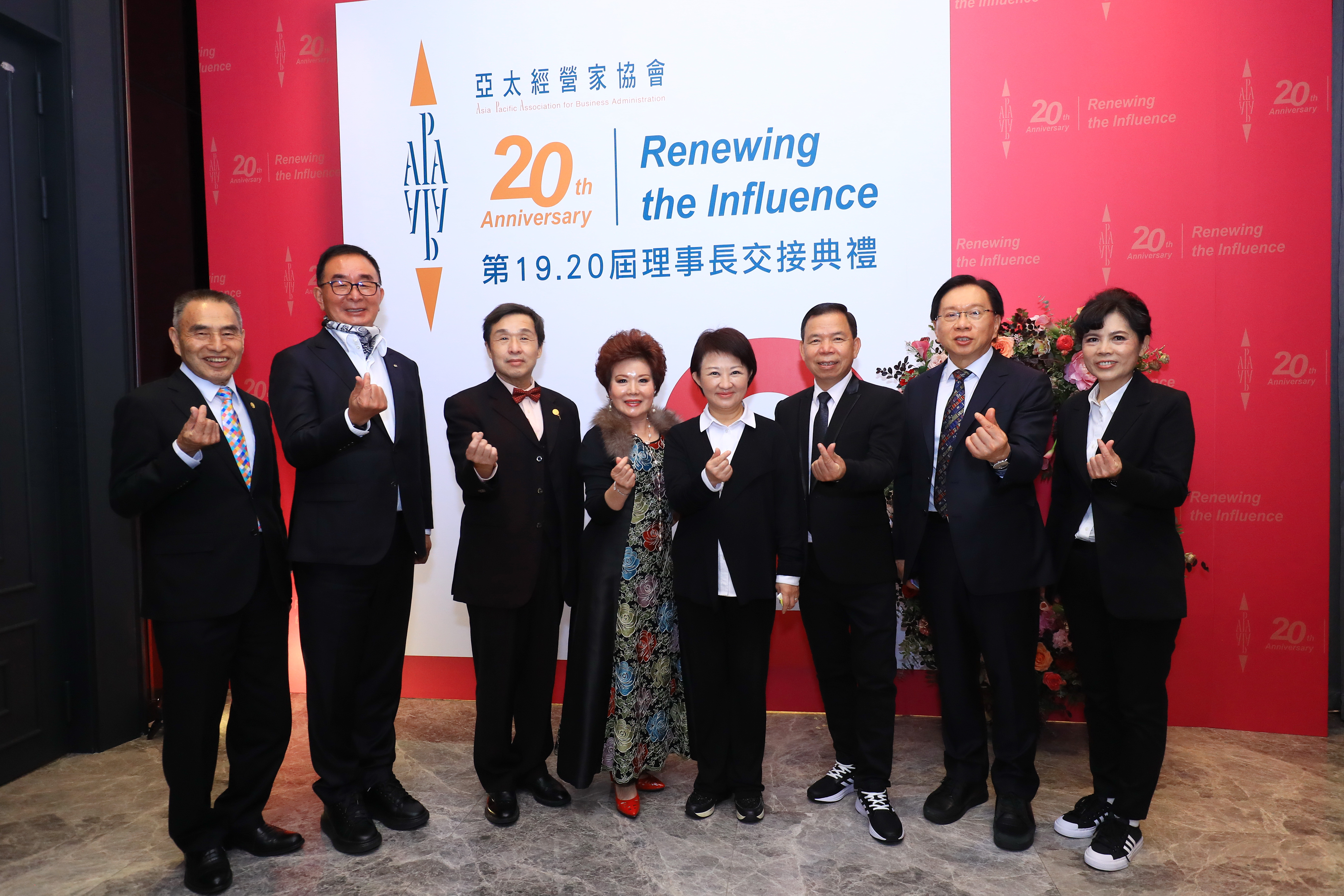 「台中市亞太經營家協會」為大台中地區企業董事長、總經理、及享有經營決策高階主管所組成的社會菁英團體,今(8)日舉行20週年慶暨第20屆理事長交接典禮,由前任理事長李成交接給新任理事長陳阿南,現場匯聚逾百位大台中地區各菁英企業主。市長盧秀燕晚間出席恭賀致意,感謝協會促進異業合作,力行社會公益,推動大台中地區產業永續發展。