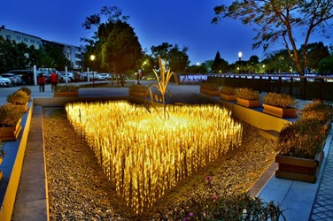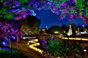 葫蘆墩好美!台中市政府觀光旅遊局以豐原「稻穗」特色及冬令時節為背景,搭配葫蘆墩公園原有地景風貌,以「豐遊」為主軸,結合冬季充滿希望的意象,打造「金色葫蘆墩」、「冬豐站」的城市IP,展期從1224日起至明年19日每晚530分至10時,並安排「生命的色彩」無人機燈光展演,展演日期為1224日晚間6時、1225日、明年11日、18日晚間7時。