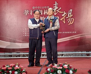 台中市政府民政局今(29)日舉行110年度孝行楷模及宗教團體表揚,表彰全市30位孝行楷模的良善懿行,以及全市熱心公益、配合環保政策的宗教團體,其中特別貢獻獎4家、宗教團體捐資興辦公益慈善及社會教化事業績優單位82家、通過低碳認證54家,共計140家宗教團體獲獎。民政局長吳世瑋今代表市長盧秀燕出席頒獎,他感謝所有孝行楷模、中市宗教團體,讓台中更美好。