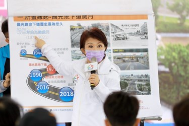 盧市長感謝民眾配合施工,以及中央補助、地方民意代表支持預算。她說,國光路地下道建於民國60年,有半世紀之久,對於地方歷史有特殊意義;國光路地下道填平經費約1億1,458萬元,其中約4,214萬元由營建署補助,除一併將鐵路舊橋及建國南北路橋拆除外,更整合雨水下水道、寬頻管道及人行道等設施,使交通路網及公共設施更完善,逐步落實「富市台中、新好建設」,創造新好生活。