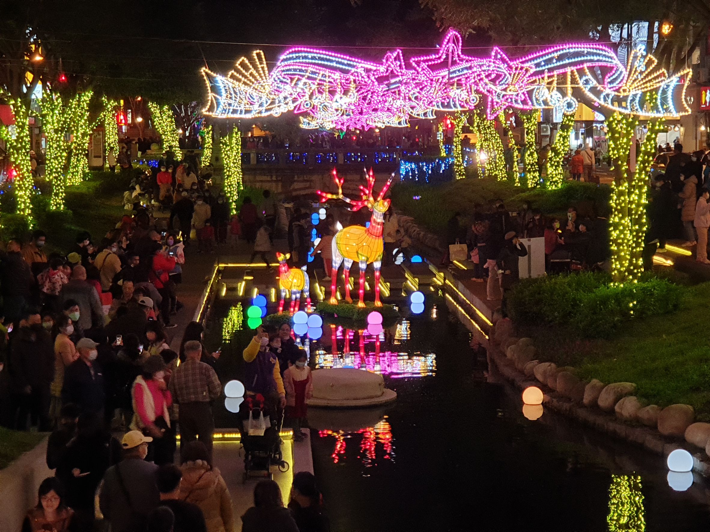 市府新聞局表示,2021耶誕嘉年華場域相較去年大幅增加,包括舊台中火車站、柳川展區延伸至二期自立街段、綠川從雙十路、建國路段至民權路段,更新增台中文學館和市役所,使民眾漫步舊城區時,不僅可欣賞繽紛閃耀的燈飾,更可至周邊商店消費、探詢台中在地好滋味、體味老台中的故事。