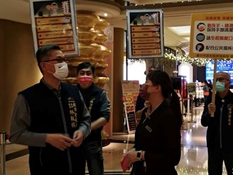這次宣導前往南屯區潮港城國際美食館,業者除落實顧客進場管理、用餐管理外,也積極維持用餐環境良好通風,環境清潔消毒,近期加嚴的防疫措施,業者均透過相關迎賓公告、電話或口頭方式告知顧客,宴會進行前也會請主持人開場時再次提醒,避免聚餐之餘,不小心違反防疫規定,得不償失。