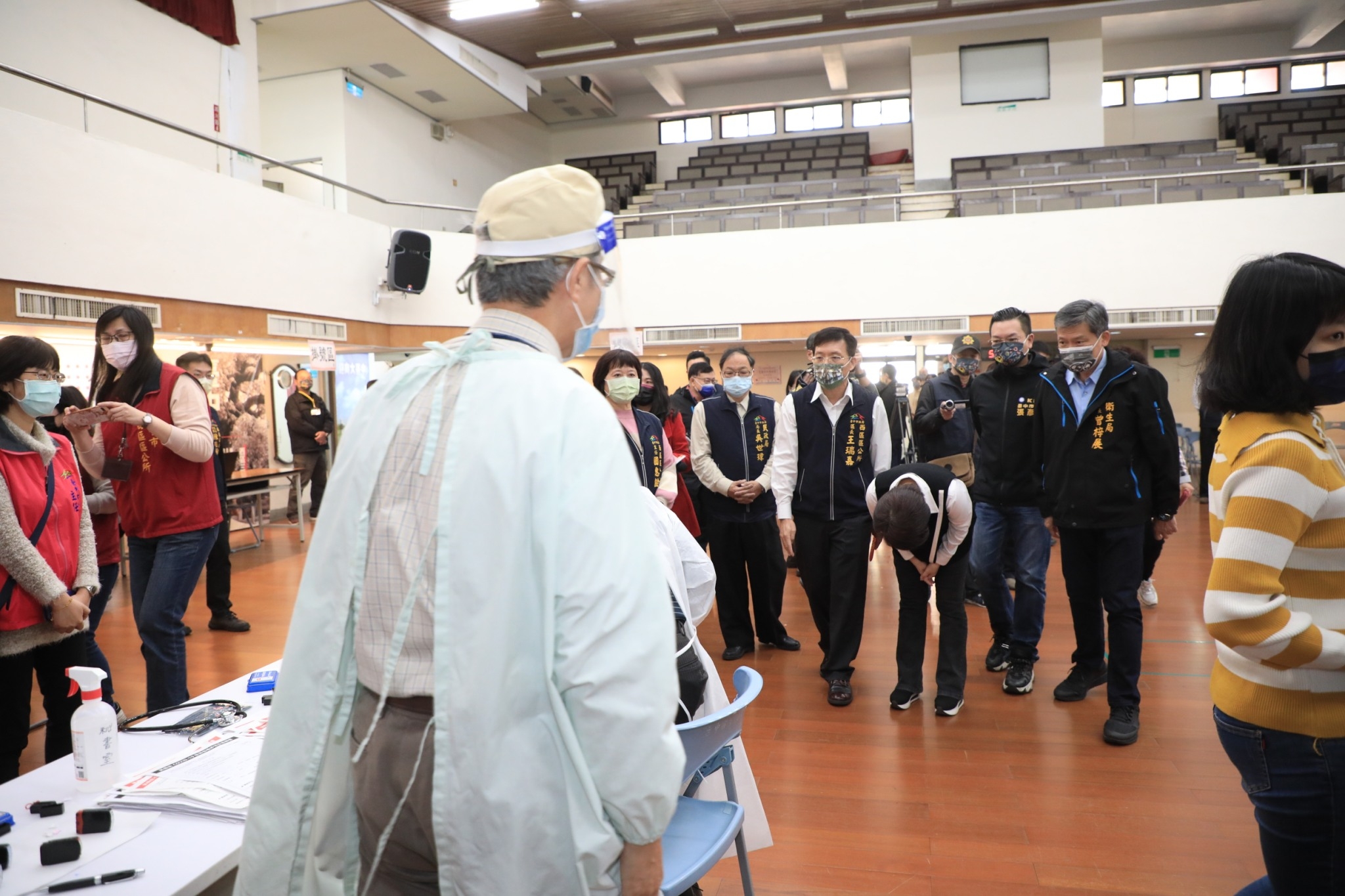 今日視察活動,盧市長、衛生局長曾梓展、民政局長吳世瑋、教育局長楊振昇、市議員張彥彤及多位里長均到場關心。(1/14*16)*衛生局