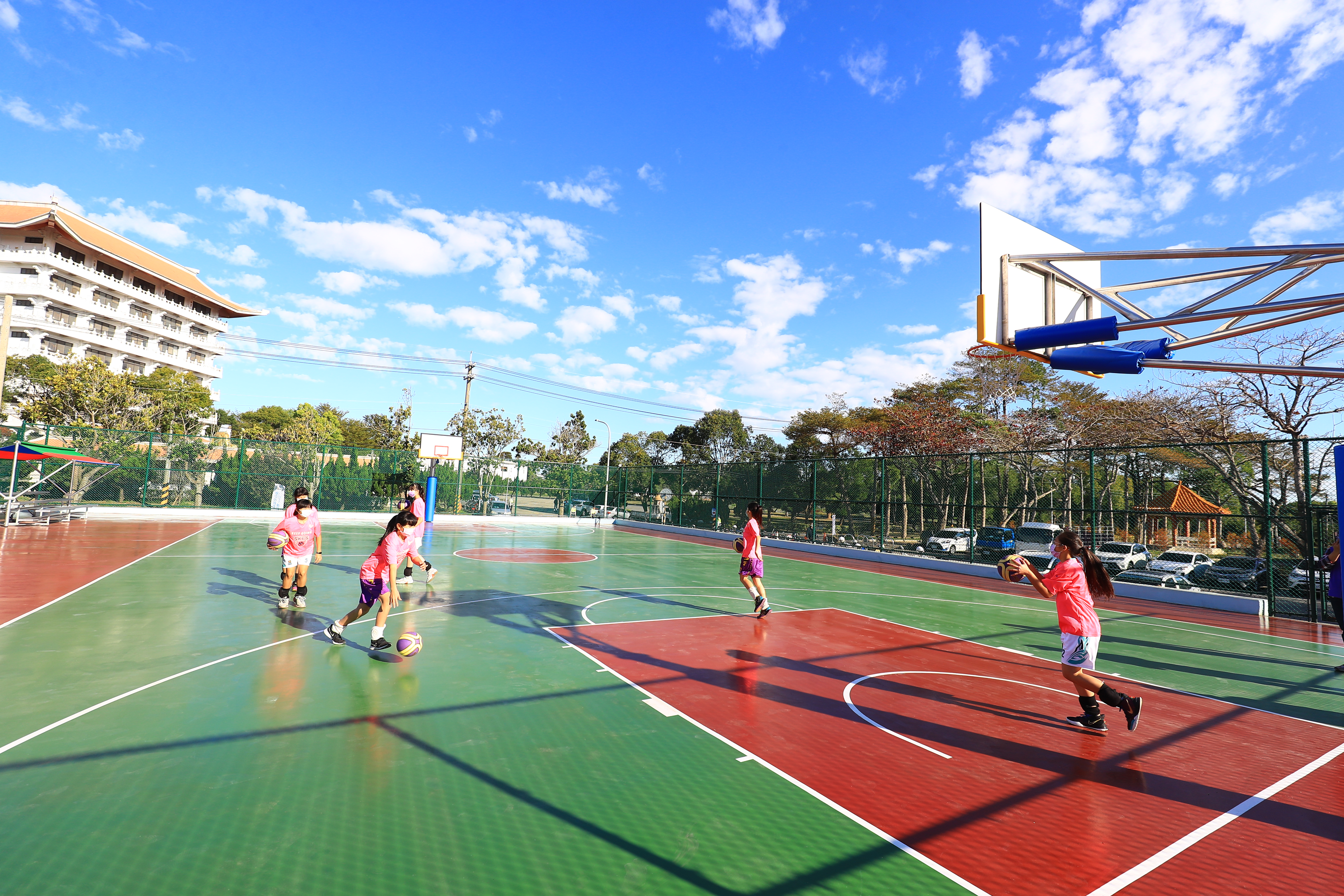 運動局長李昱叡指出,新設籃球場特色為單柱式籃球架,鋪面採用PU富有彈性,大幅降低打球跳躍動作反作用力的衝擊;溜冰場特別使用磨石子地坪,美觀且易清潔,另外,運動場地更有監視攝影機,可即時得知現場使用狀況。