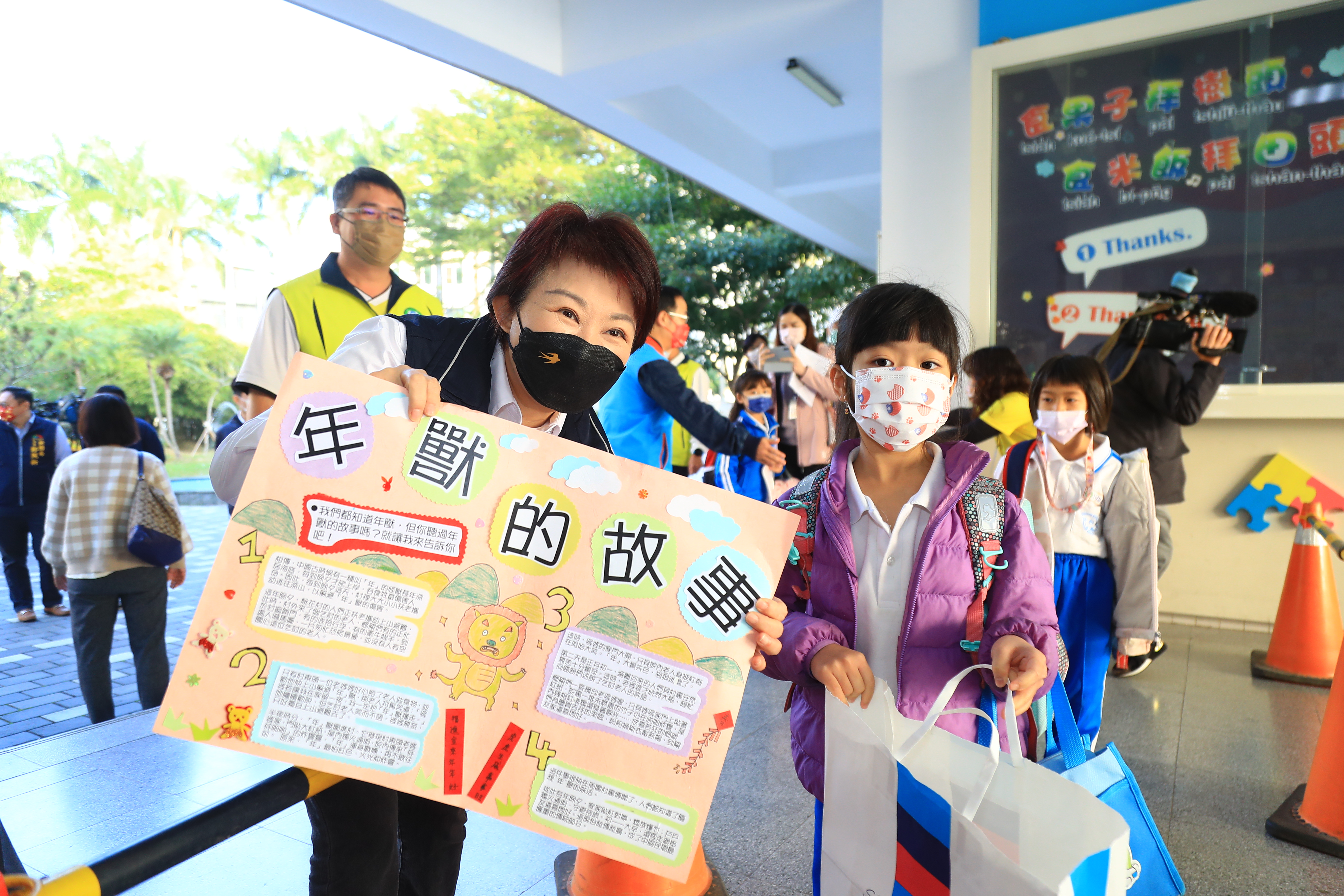 110學年度第2學期開學首日,台中市長盧秀燕今(11)一早赴松竹國小視察學校防疫情形,現場設置紅外線體溫量測設施及消毒噴霧,盧市長於校門口迎接師生,一一向魚貫入校的小朋友們道早安;她表示,台中疫情相對平穩,但為守護師生健康,校園仍採較嚴格的防疫措施,包括上課戴口罩、午餐用隔板等,且只要有1位師生確診即全校停課不停學14天,盼讓孩子安心學習。