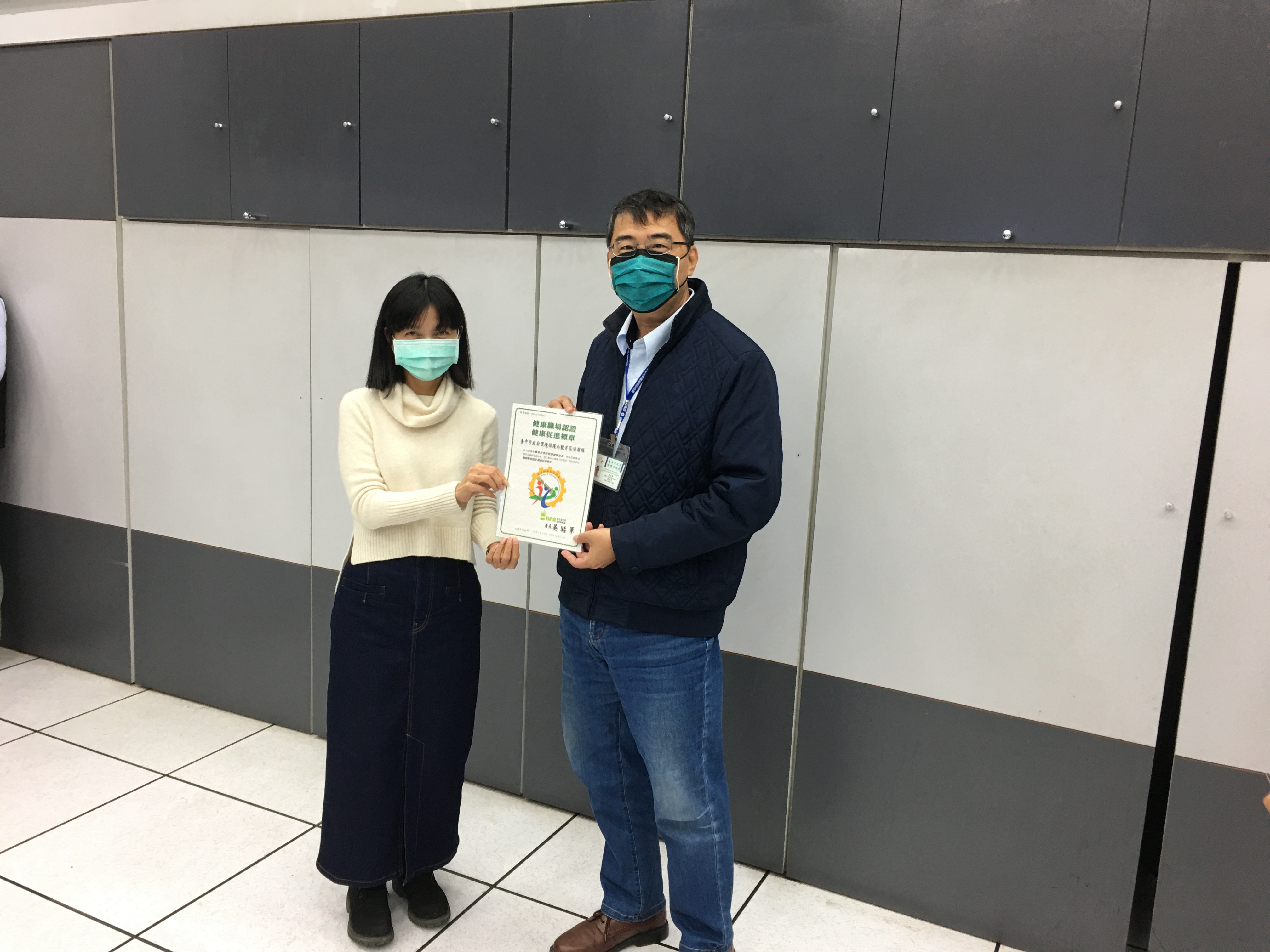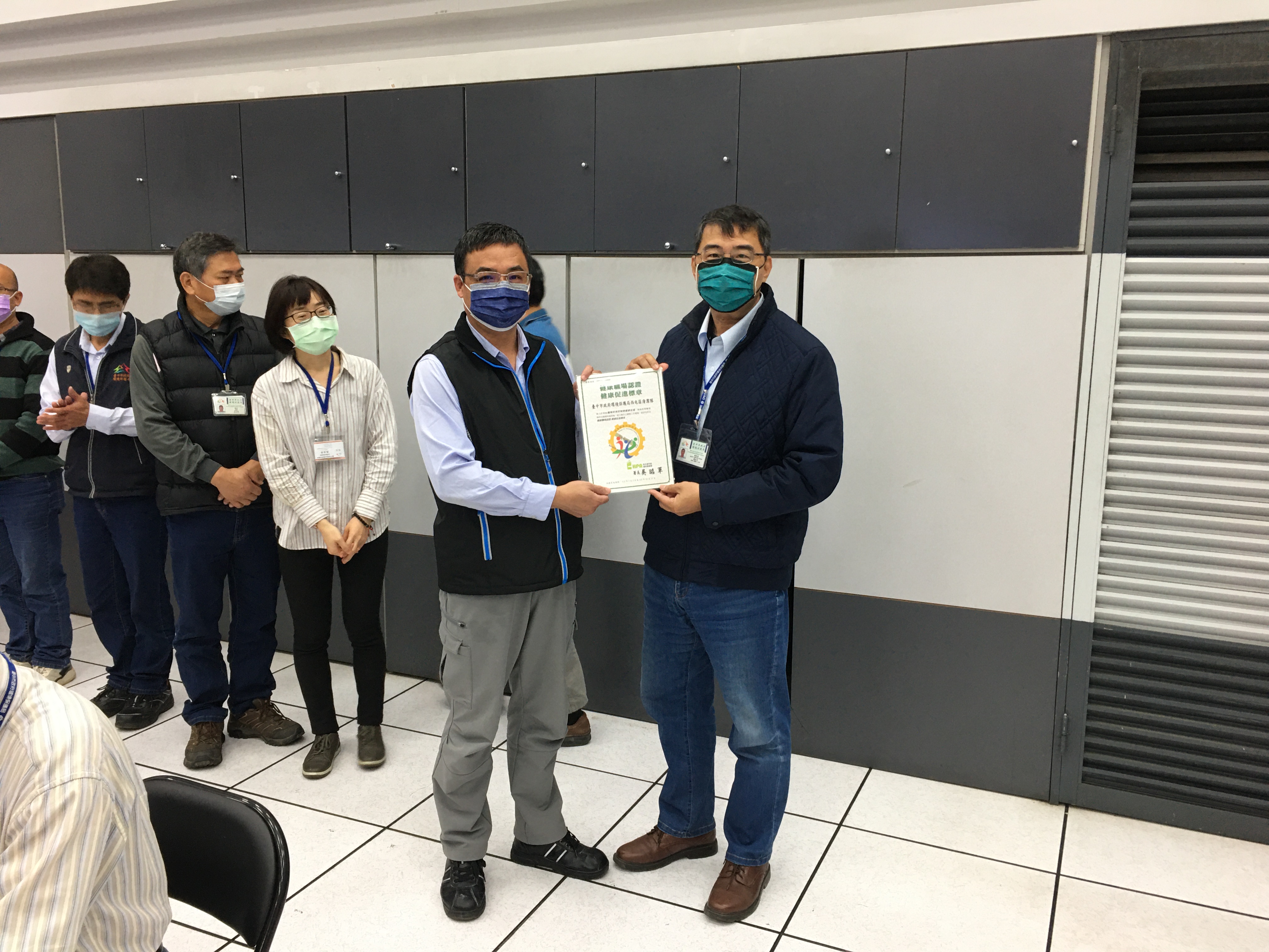 環保局表示,衛福部國民健康署「健康職場認證標章」,分為「健康啟動」與「健康促進」兩級認證,「健康啟動」為逐步打造健康職場的意志決心,「健康促進」則為落實執行職安相關計畫,提供員工友善職場環境,為該認證制度的最高榮譽。108年由大安區清潔隊率先全國通過「健康促進」標章,台中市27區清潔隊陸續取得「健康啟動」標章後,於10916區清潔隊獲得「健康促進」標章,並於11010個區隊再獲「健康促進」標章,使得台中市全部清潔隊均通過認證,為6都直轄市環保機關首例完成「健康促進」標章全壘打單位,足堪為全國環保機關優良績效工作表率。