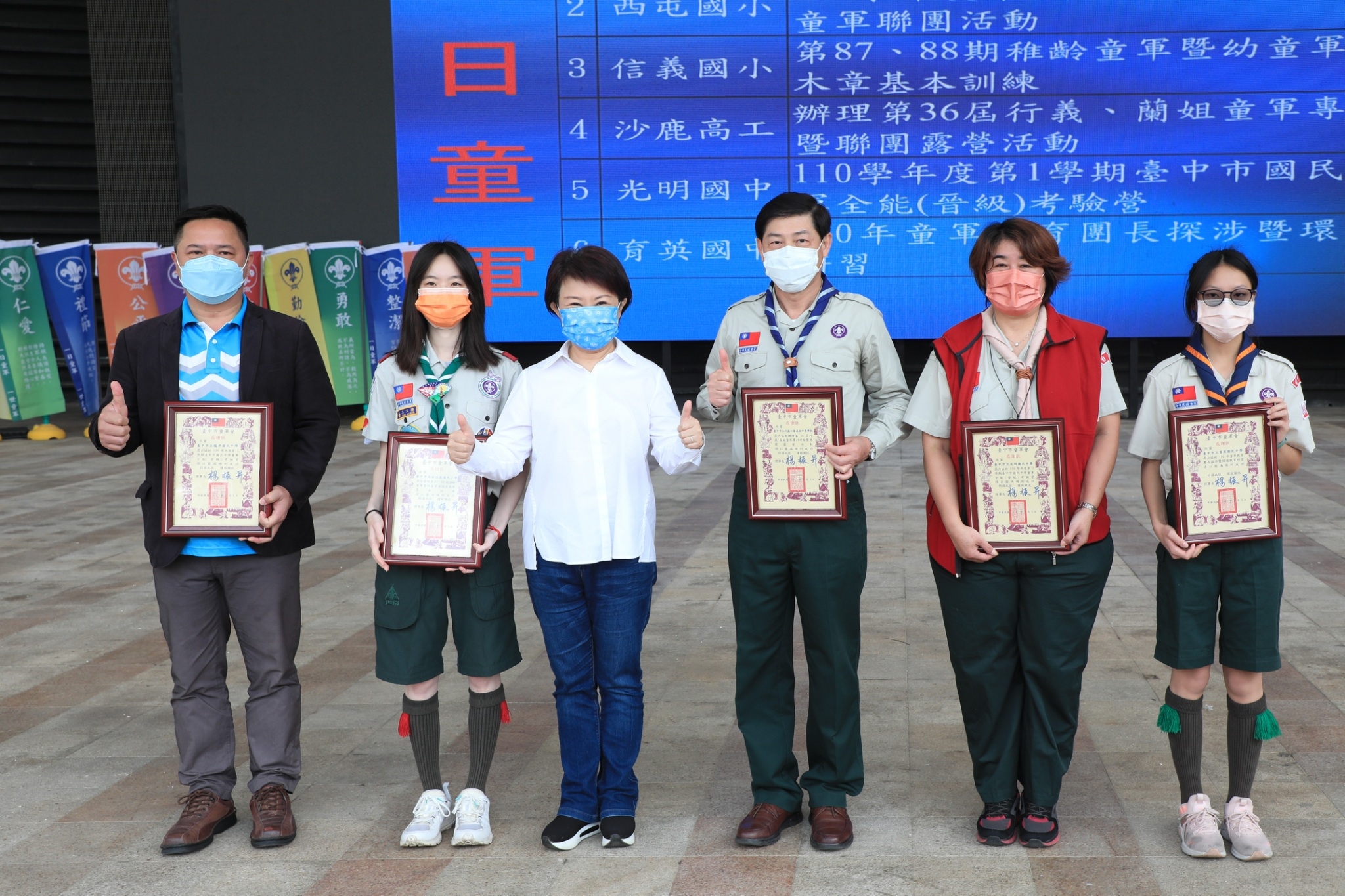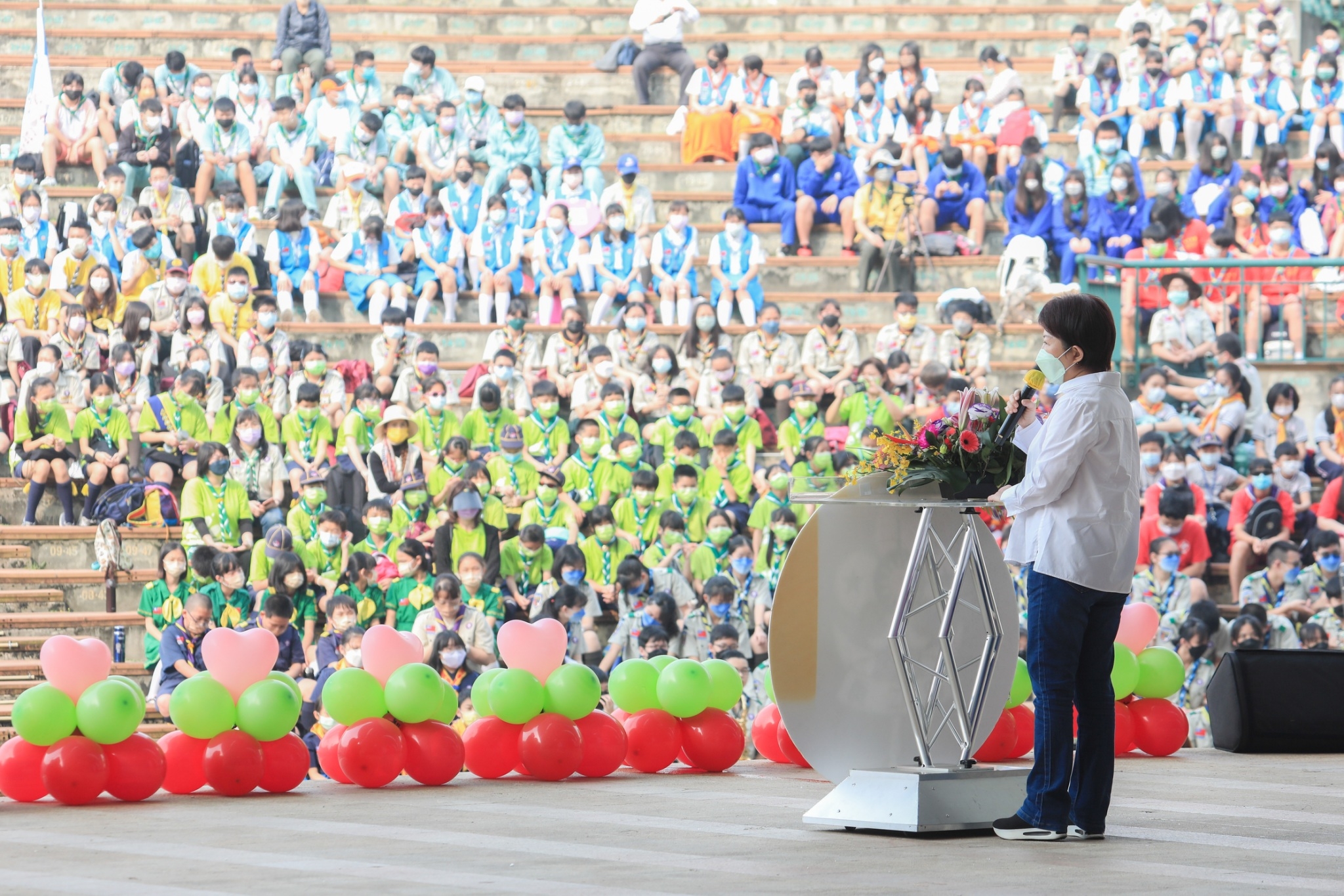 盧市長表示,她是台中市長、台中市童軍會會長,也是一名政治大學「資深女童軍」。她在政大童軍團學到三大童軍精神,第一是「智、仁、勇」,努力充實智慧、有愛心且勇敢;第二是「團隊合作」,注重團隊精神,不標榜自我;第三是「日行一善」,每天都要想到怎麼幫助別人、做好事,這些重要人生價值讓她受益良多,期勉所有童軍夥伴持續發揚這三大童軍精神。