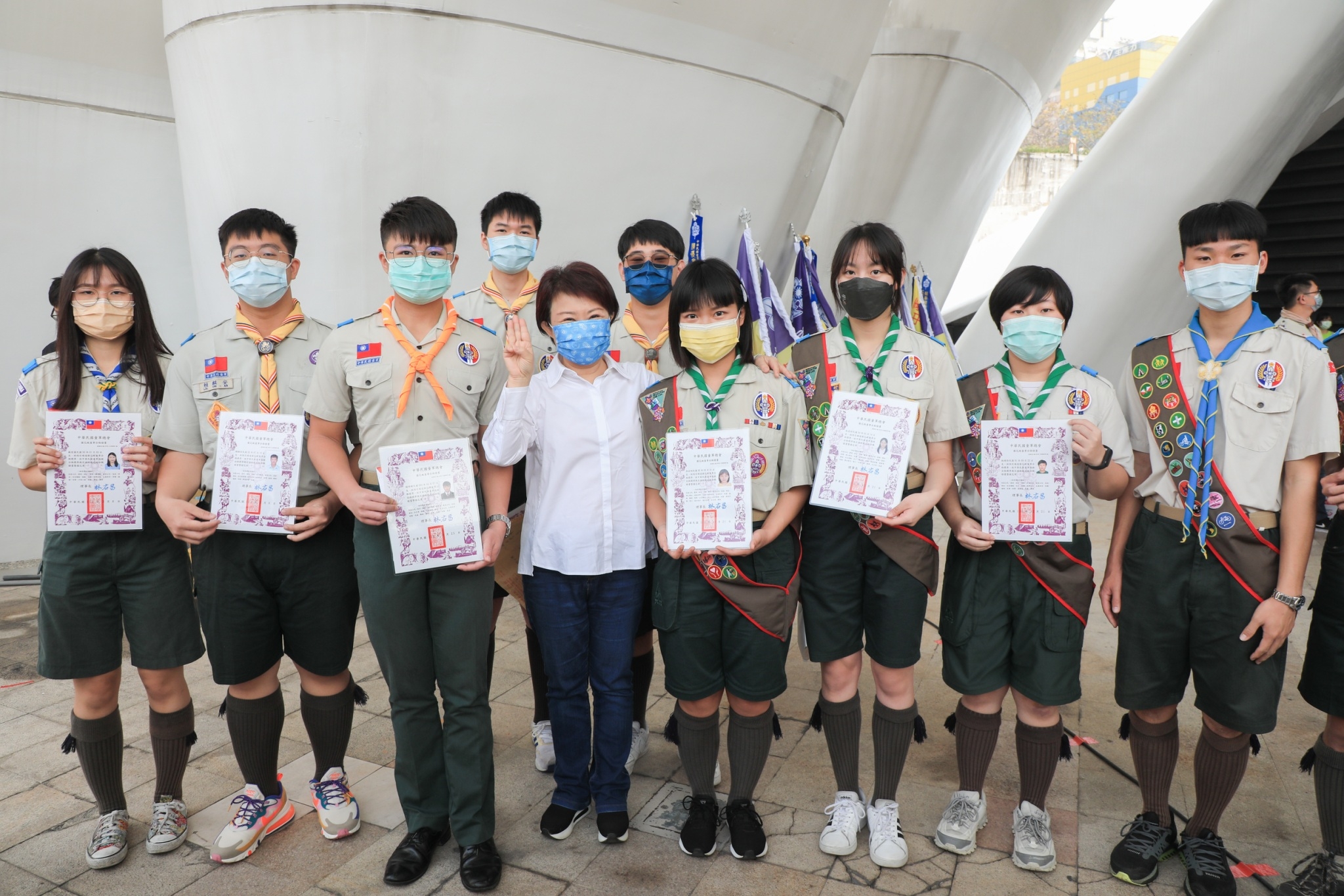 今日除了表揚全國評定的績優童軍團,市府教育局也頒發感謝狀,感謝承辦活動及服務績優的學校與單位,並頒獎表揚187位國花級章、長城級章、獅級章等晉級獎章和全國優秀童軍獎章等獎項的優秀童軍,肯定他們的努力與付出。