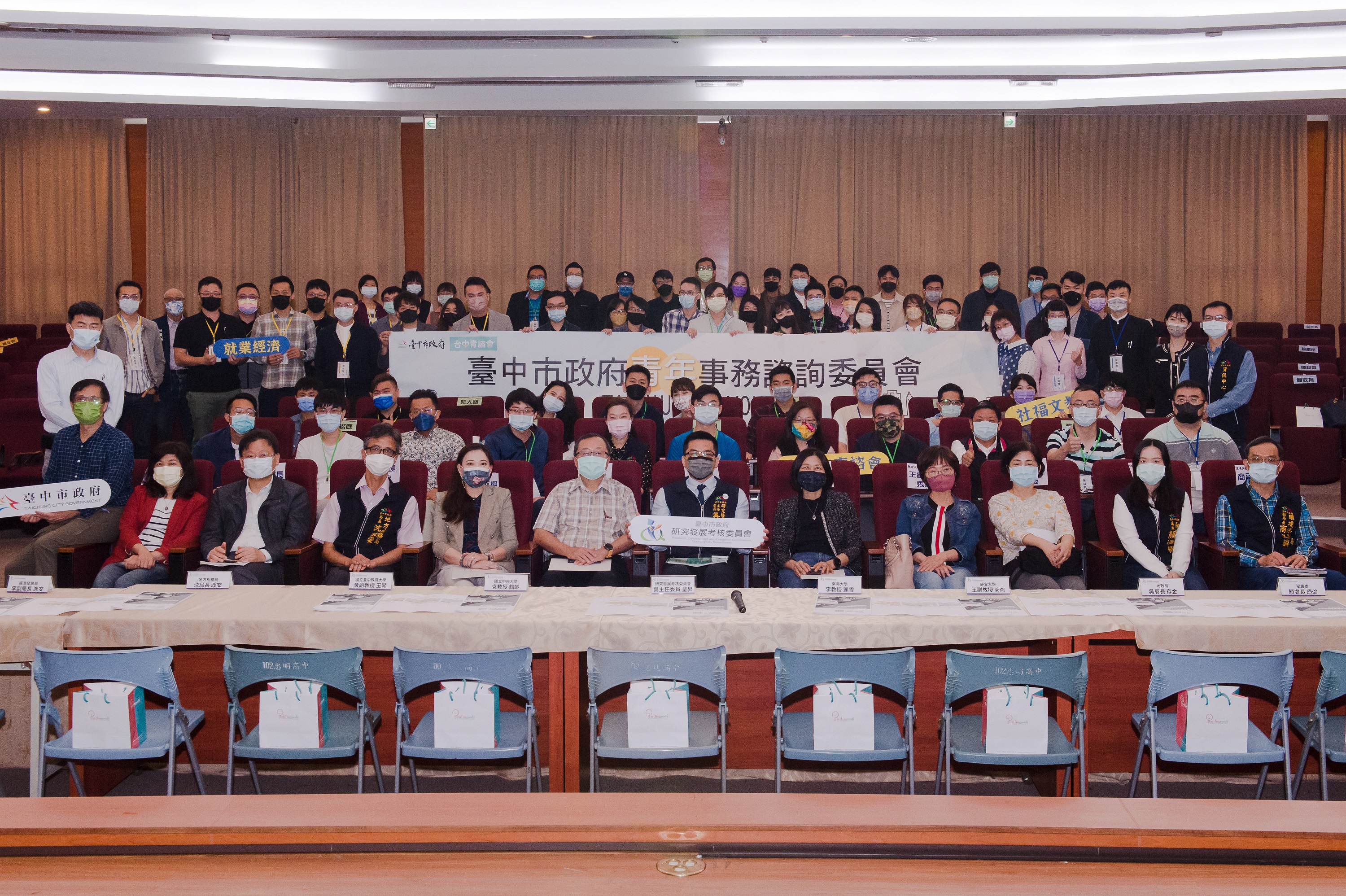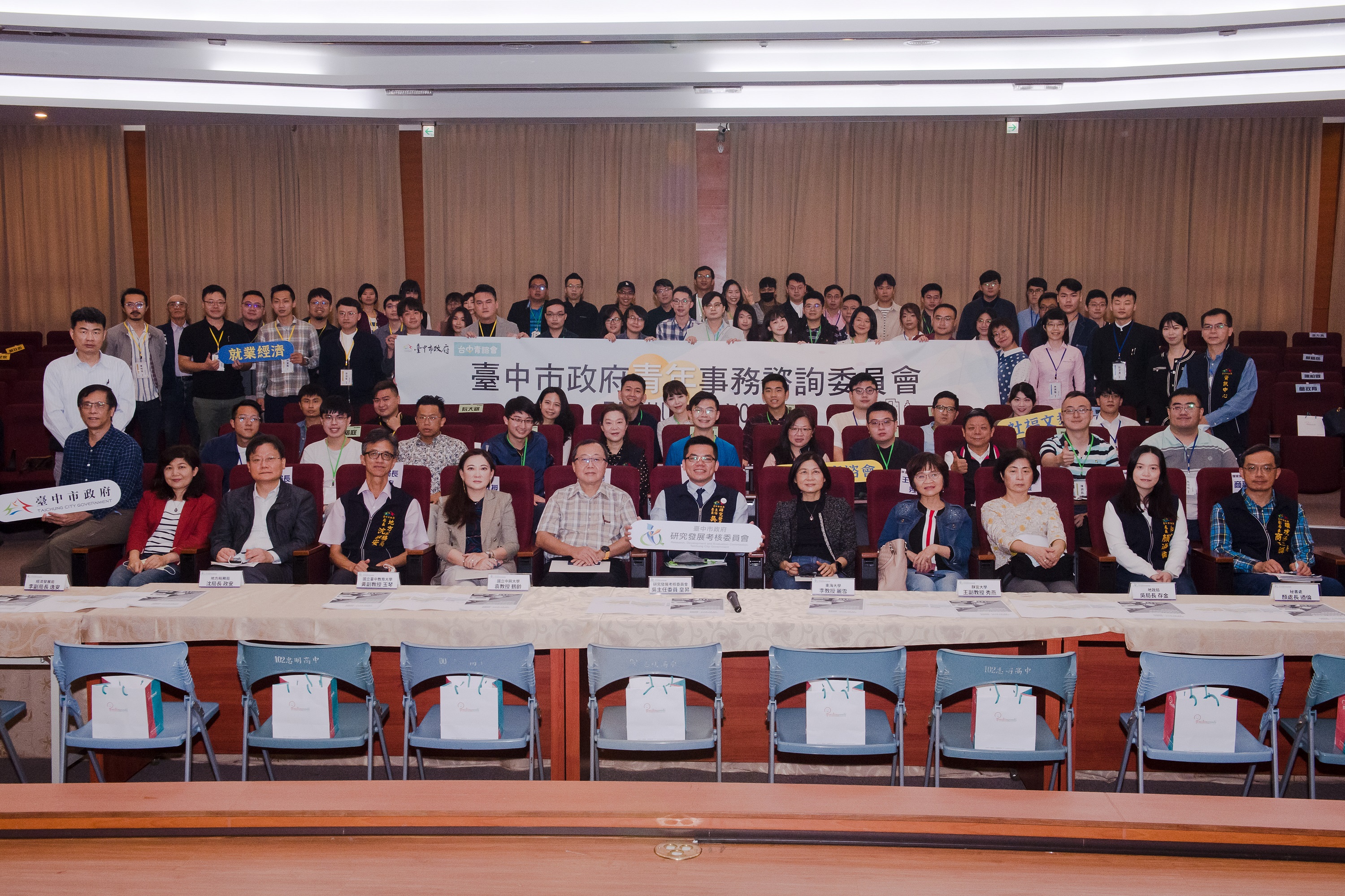 這次第二屆青諮大會,地稅局長沈政安、秘書處長顏迺倫、地政局長吳存金、文化局副局長施純福、經發局副局長李逸安、環保局副局長商文麟,以及教育局、都發局、勞工局、交通局、衛生局、資訊中心等業務主管皆到場與青年交流。研考會也特別感謝在地專家學者中興大學教授袁鶴齡、東海大學教授李麗雪、台中教育大學副教授黃玉琴及靜宜大學副教授王秀燕出席提供專業意見,讓市府政策擬定與執行更臻完善。